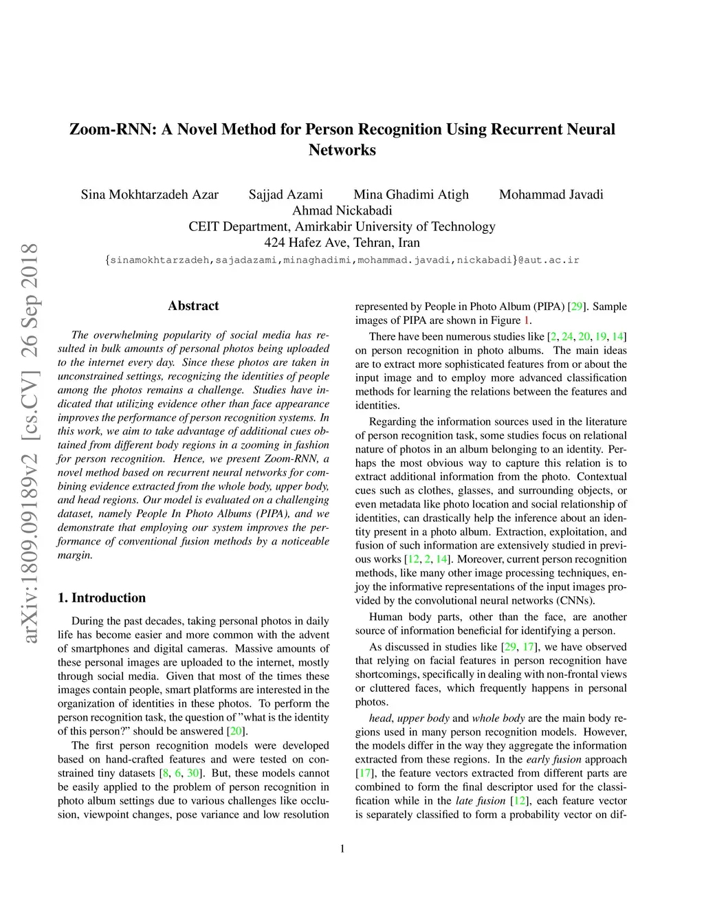 Zoom-RNN: A Novel Method for Person Recognition Using Recurrent Neural