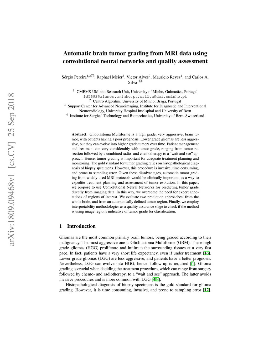 Automatic brain tumor grading from MRI data using convolutional neural