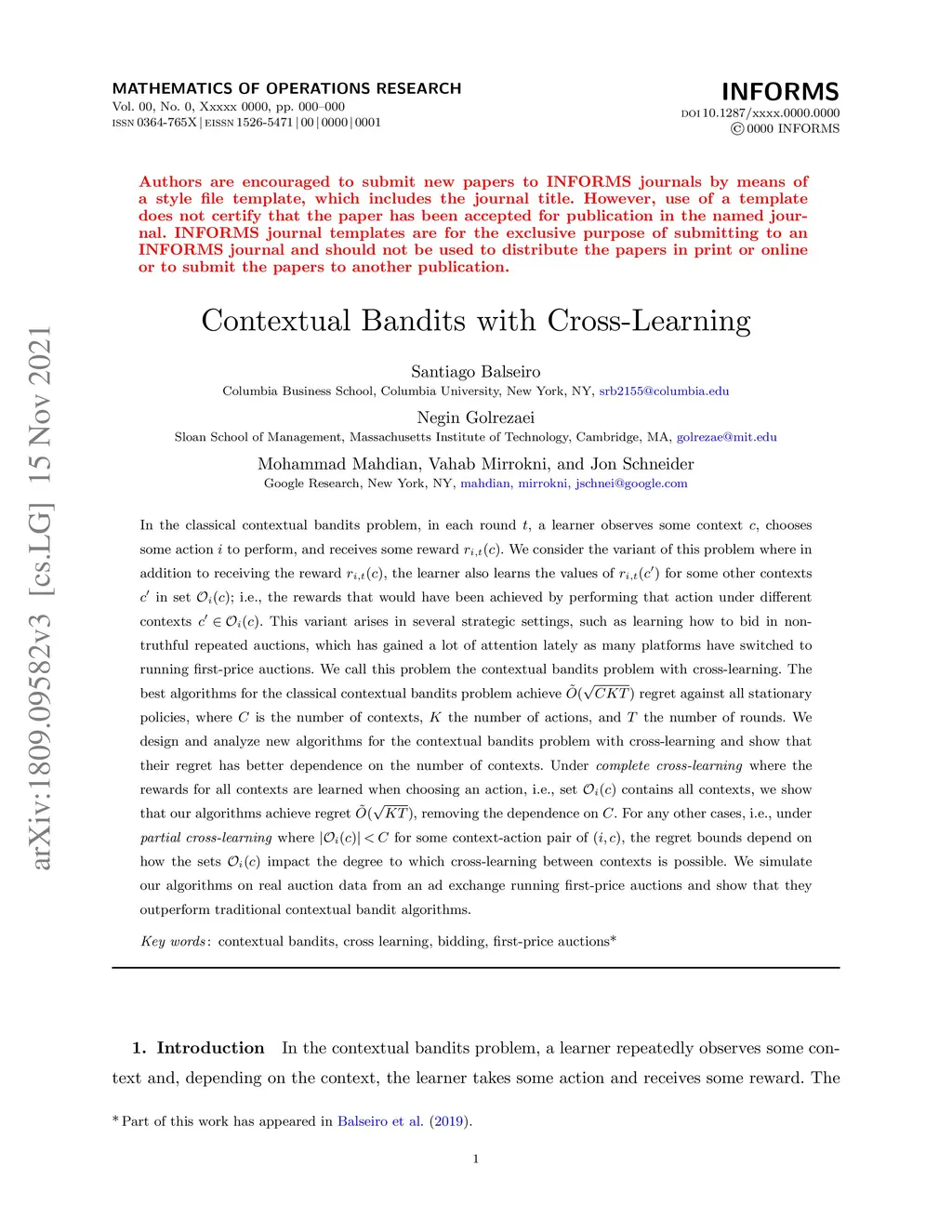 Contextual Bandits with Cross-learning