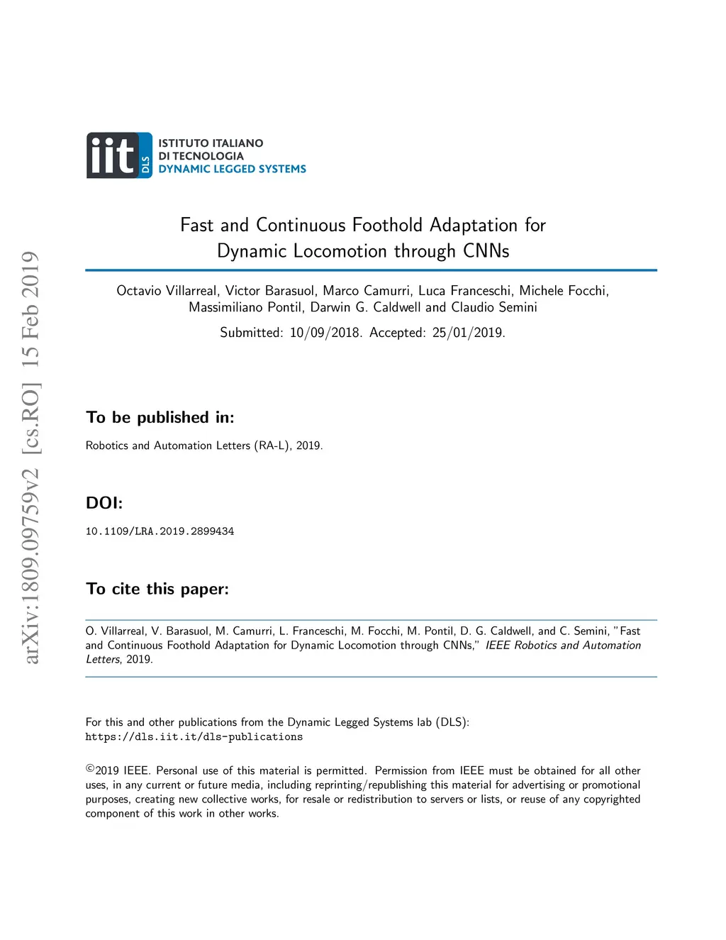 Fast and Continuous Foothold Adaptation for Dynamic Locomotion through