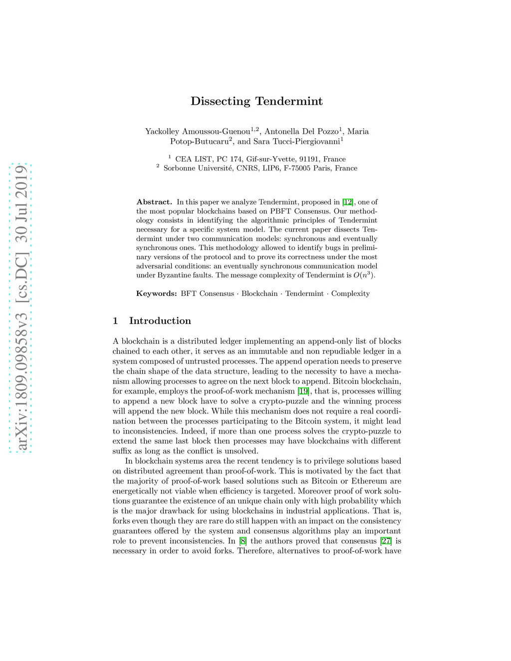 In this paper we analyze Tendermint proposed in [7], one of the most popular blockchains based on PBFT Consensus. The current paper dissects Tendermint under various system communication models and Byzantine adversaries. Our methodology consists in identifying the algorithmic principles of Tendermint necessary for a specific combination of communication model-adversary. This methodology allowed to identify bugs [3] in preliminary versions of the protocol ([19], [7]) and to prove its correctness under the most adversarial conditions: an eventually synchronous communication model and asymmetric Byzantine faults.