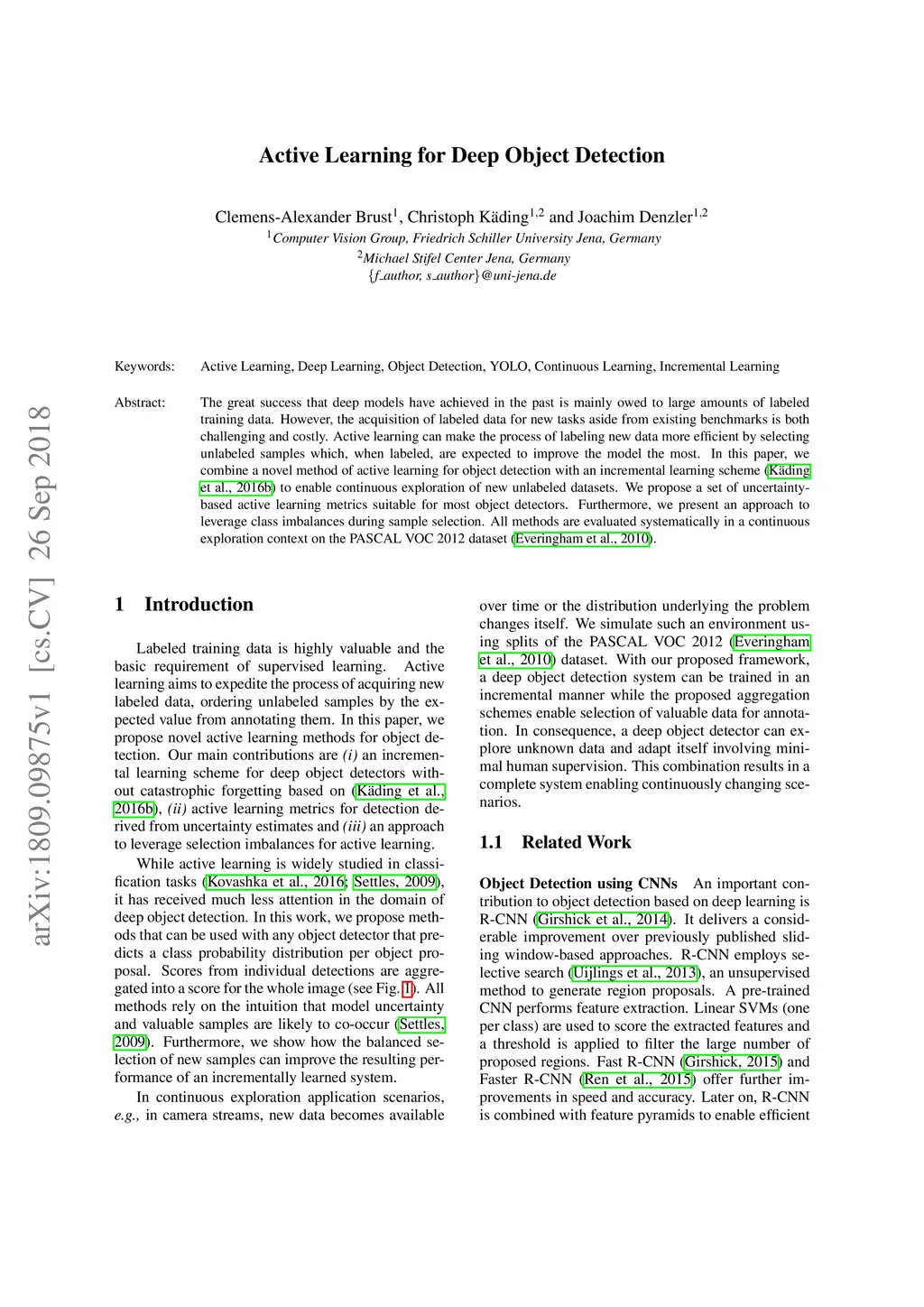 The great success that deep models have achieved in the past is mainly owed to large amounts of labeled training data. However, the acquisition of labeled data for new tasks aside from existing benchmarks is both challenging and costly. Active learning can make the process of labeling new data more efficient by selecting unlabeled samples which, when labeled, are expected to improve the model the most. In this paper, we combine a novel method of active learning for object detection with an incremental learning scheme to enable continuous exploration of new unlabeled datasets. We propose a set of uncertainty-based active learning metrics suitable for most object detectors. Furthermore, we present an approach to leverage class imbalances during sample selection. All methods are evaluated systematically in a continuous exploration context on the PASCAL VOC 2012 dataset.