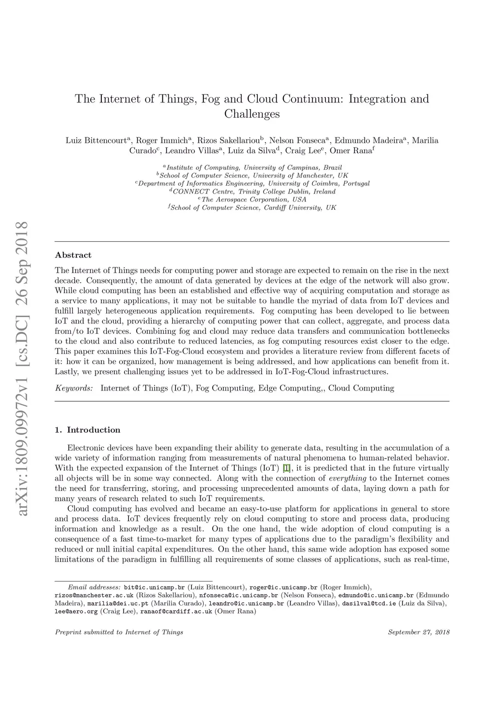 The Internet of Things, Fog and Cloud Continuum: Integration and