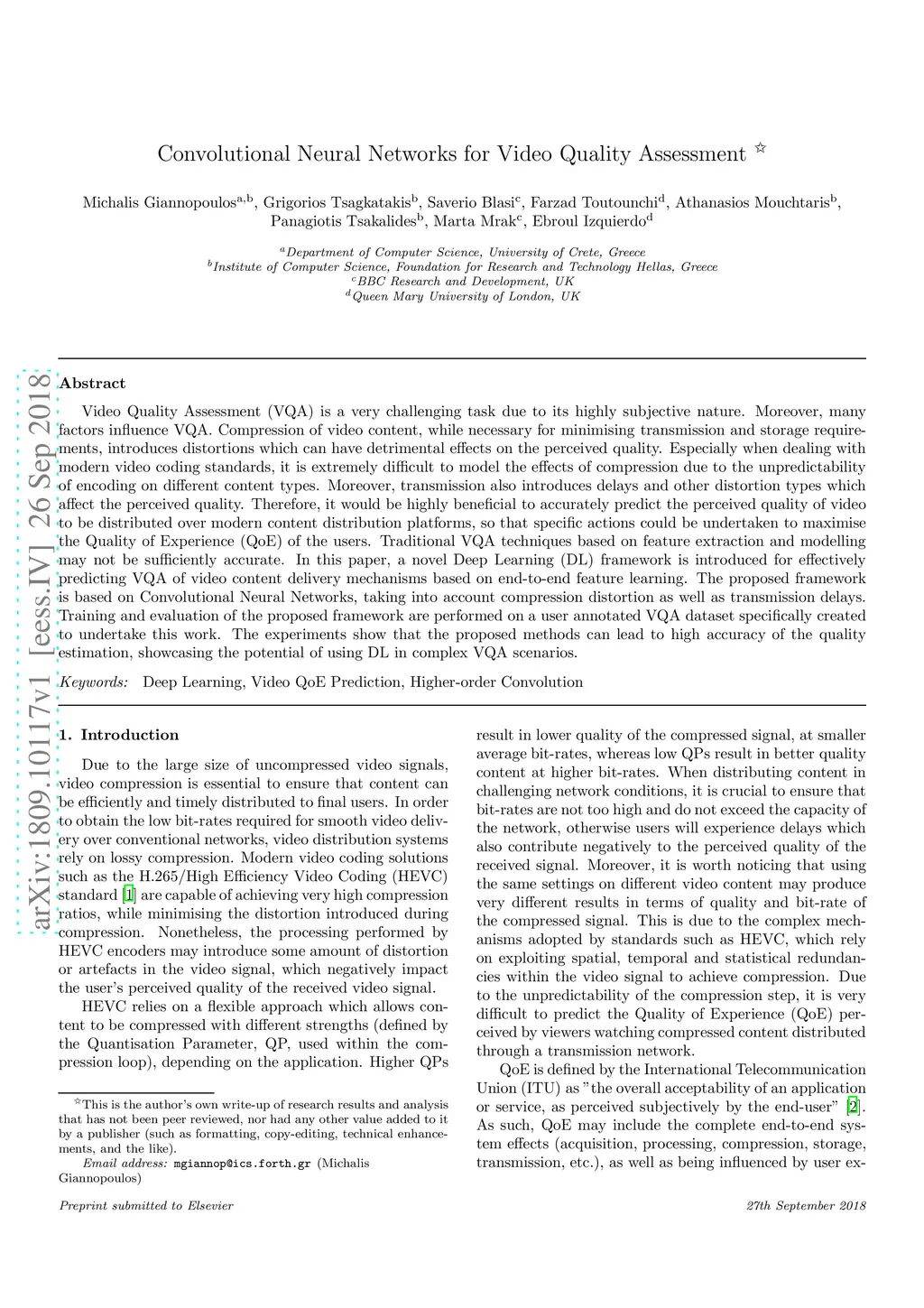 Convolutional Neural Networks for Video Quality Assessment