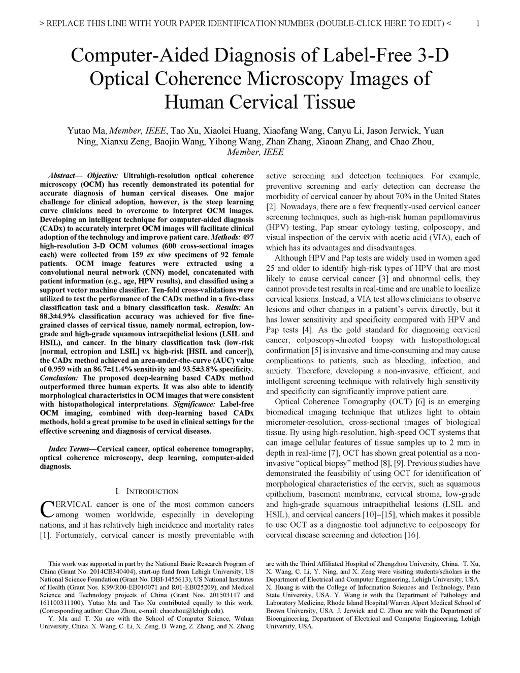 Computer-Aided Diagnosis of Label-Free 3-D Optical Coherence Microscopy