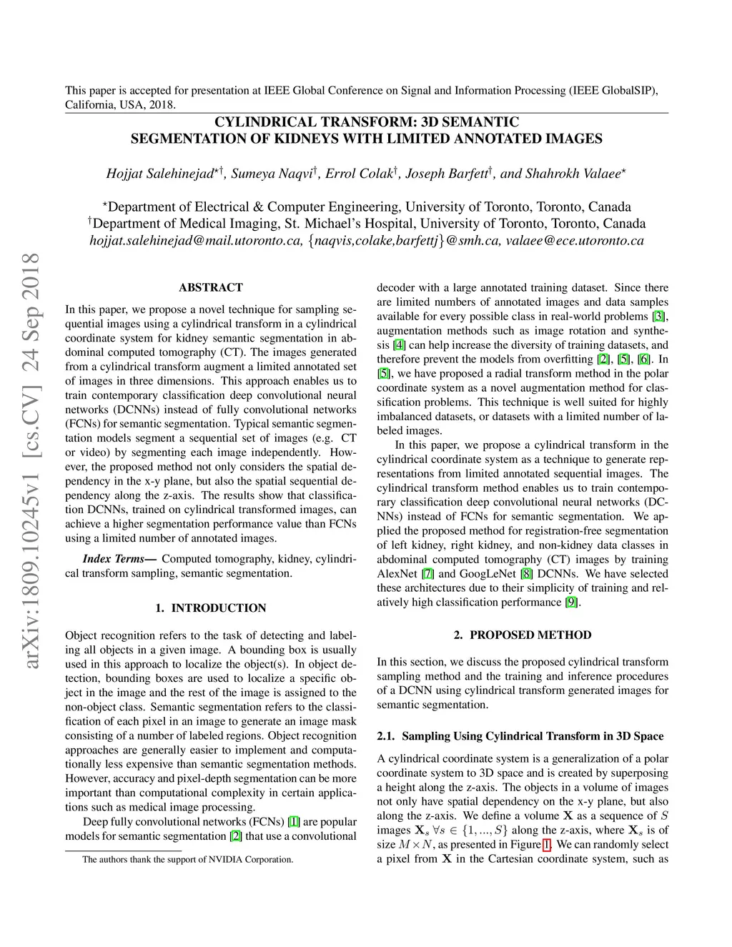 Cylindrical Transform: 3D Semantic Segmentation of Kidneys With Limited