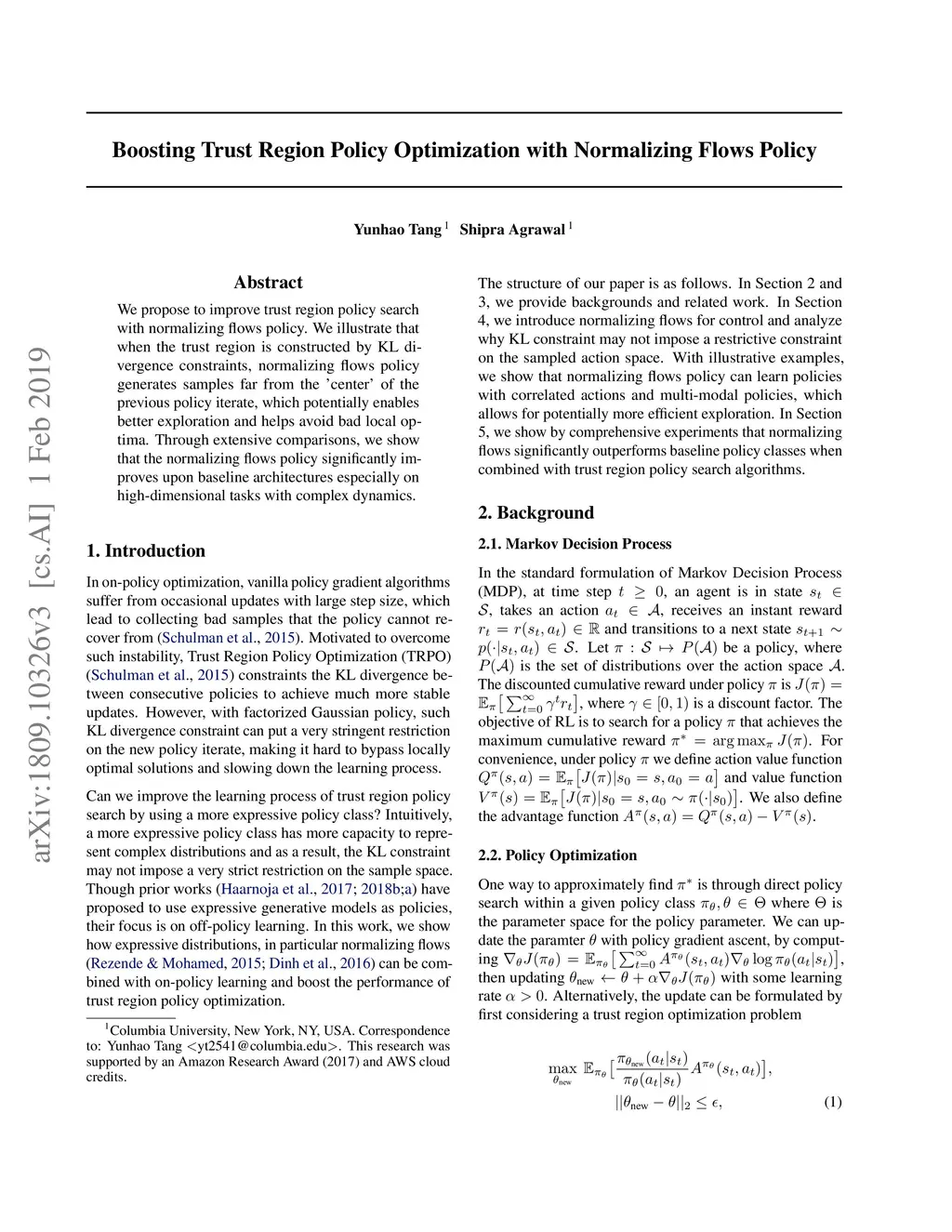 Boosting Trust Region Policy Optimization by Normalizing Flows Policy