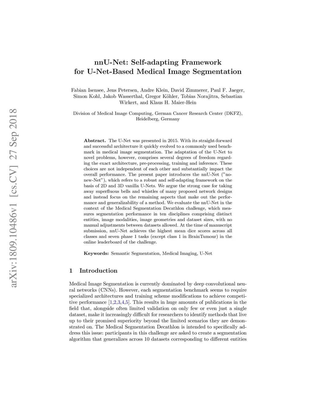 nnU-Net: Self-adapting Framework for U-Net-Based Medical Image