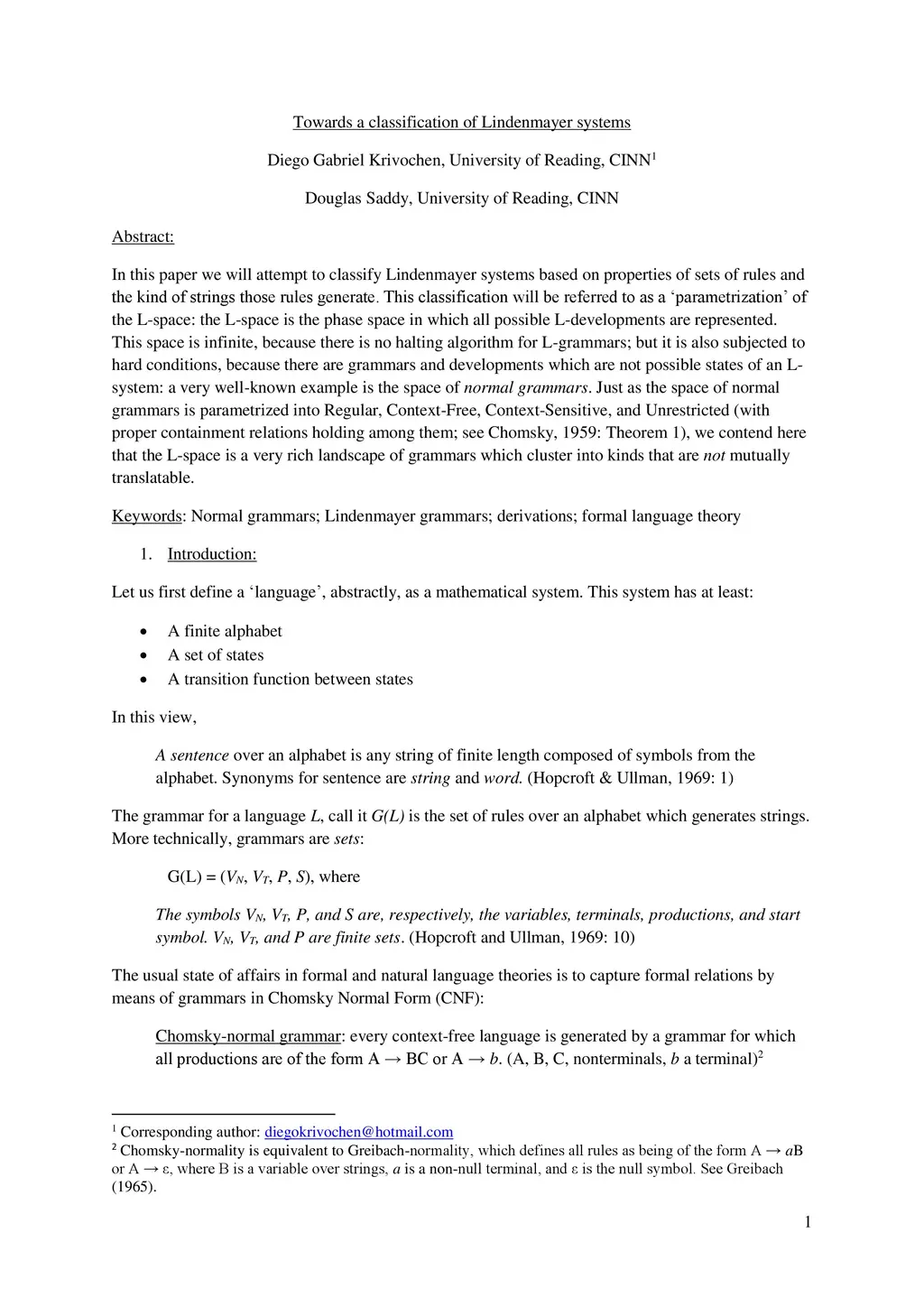 In this paper we will attempt to classify Lindenmayer systems based on properties of sets of rules and the kind of strings those rules generate. This classification will be referred to as a parametrization of the L-space: the L-space is the phase space in which all possible L-developments are represented. This space is infinite, because there is no halting algorithm for L-grammars; but it is also subjected to hard conditions, because there are grammars and developments which are not possible states of an L-system: a very well-known example is the space of normal grammars. Just as the space of normal grammars is parametrized into Regular, Context-Free, Context-Sensitive, and Unrestricted (with proper containment relations holding among them; see Chomsky, 1959: Theorem 1), we contend here that the L-space is a very rich landscape of grammars which cluster into kinds that are not mutually translatable.