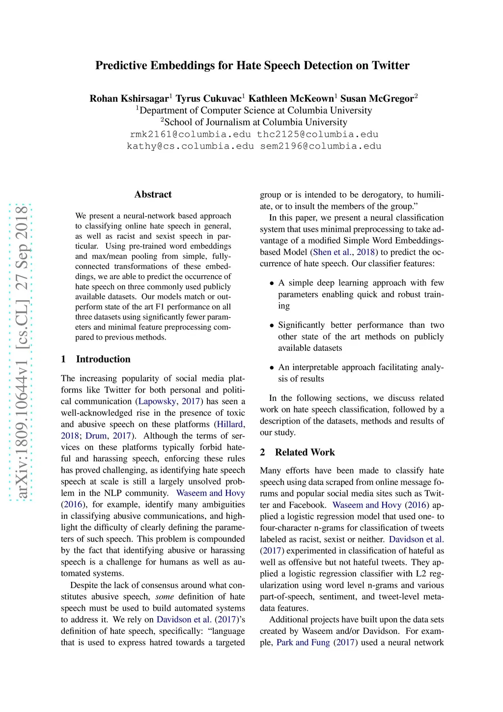 Predictive Embeddings for Hate Speech Detection on Twitter