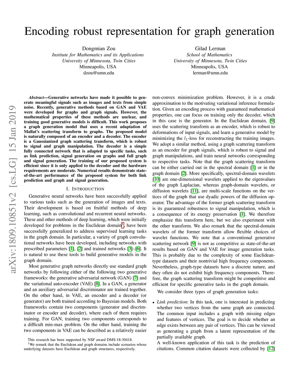 Encoding Robust Representation for Graph Generation