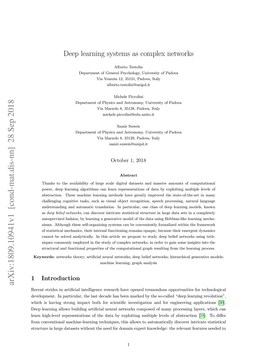 Deep learning systems as complex networks
