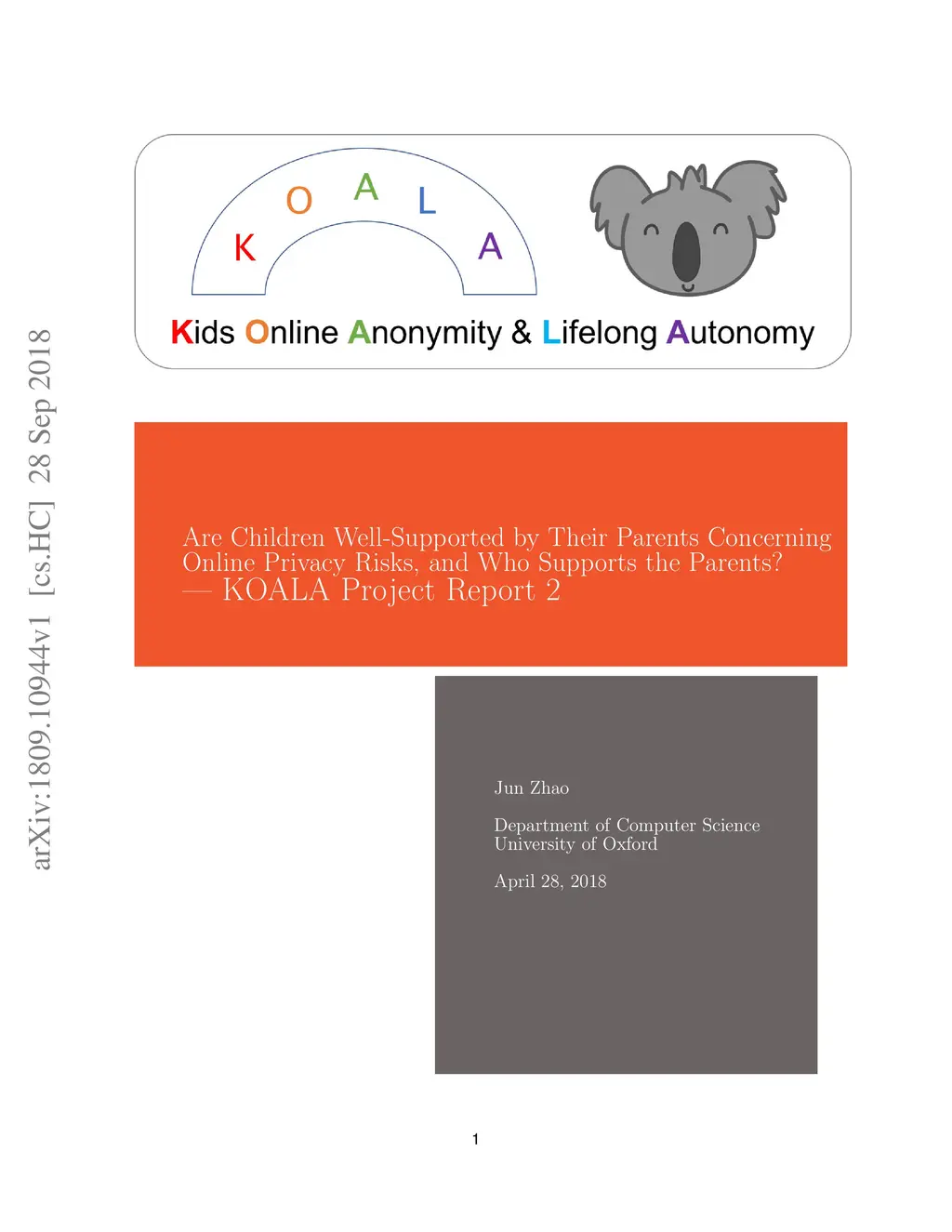 Tablet computers are becoming ubiquitously available at home or school for young children to complement education or entertainment. However, parents of children aged 6-11 often believe that children are too young to face or comprehend online privacy issues, and often take a protective approach to restrict or monitor what children can access online, instead of discussing privacy issues with children. Parents work hard to protect their children's online safety. However, little is known how much parents are aware of the risks associated with the implicit personal data collection by the first- or third-party companies behind the mobile `apps' used by their children, and hence how well parents can safeguard their children from this kind of risks. Parents have always been playing a pivotal role in mitigating children's interactions with digital technologies --- from TV to game consoles, to personal computers --- but the rapidly changing technologies are posing challenges for parents to keep up with. There is a pressing need to understand how much parents are aware of privacy risks concerning the use of tablets and how they are managing them for their primary school-aged young children. At the same time, we must also reach out to the children themselves, who are on the frontline of these technologies, to learn how capable they are to recognise risks and how well they are supported by their parents to cope with these risks. Therefore, in the summer of 2017, we conducted face-to-face interviews with 12 families in Oxfordshire and an online survey with 250 parents. This report summarises our key findings of these two studies.