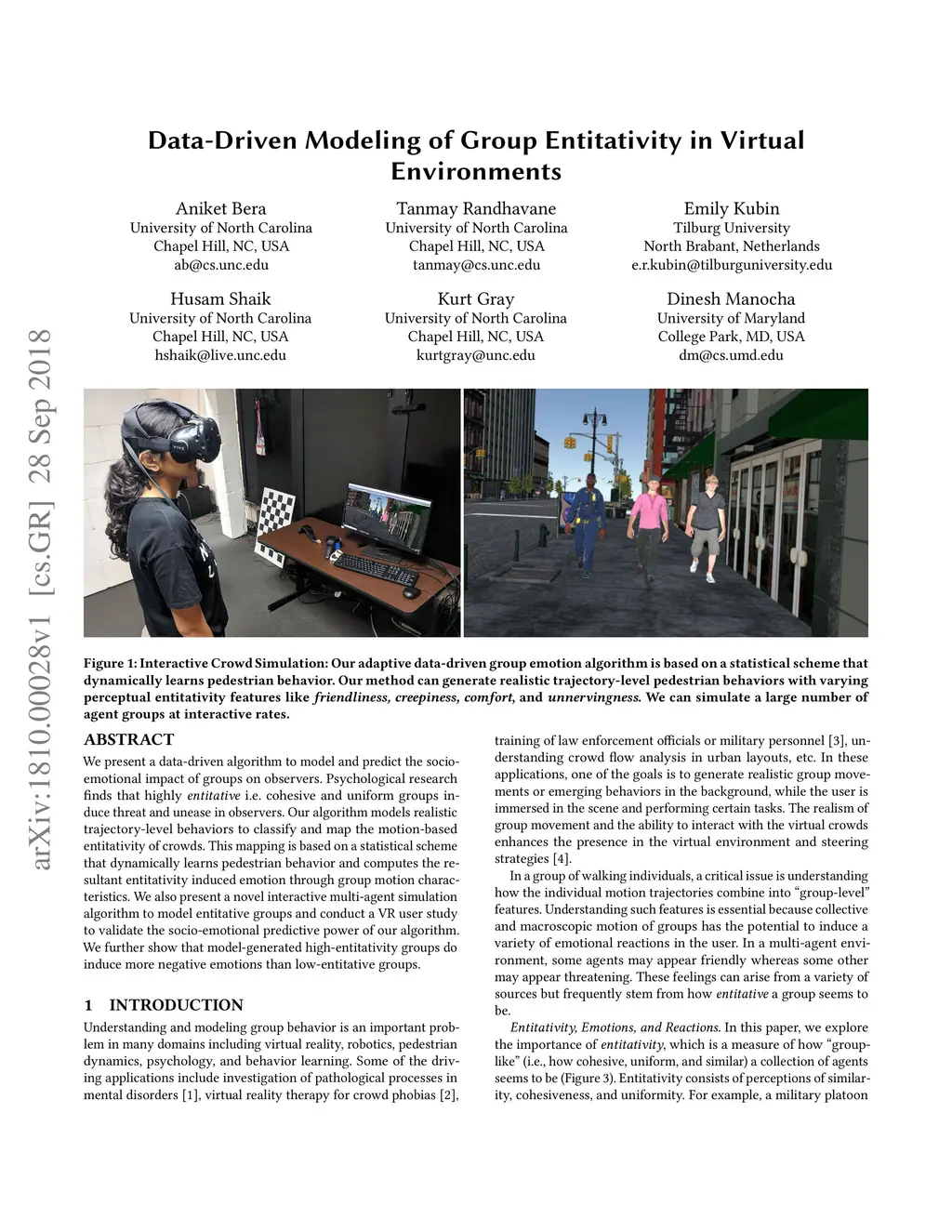 Data-Driven Modeling of Group Entitativity in Virtual Environments