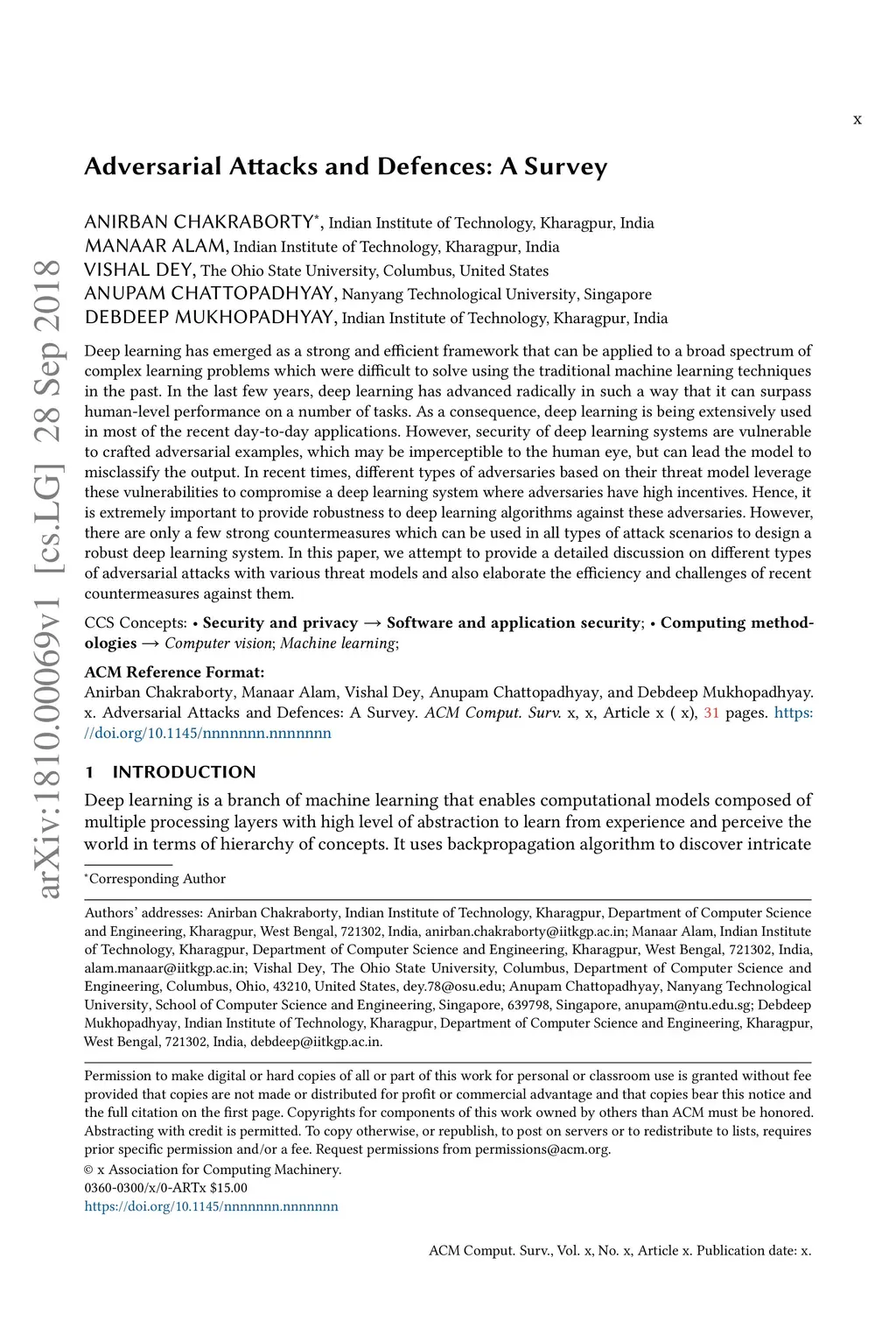 Adversarial Attacks and Defences: A Survey