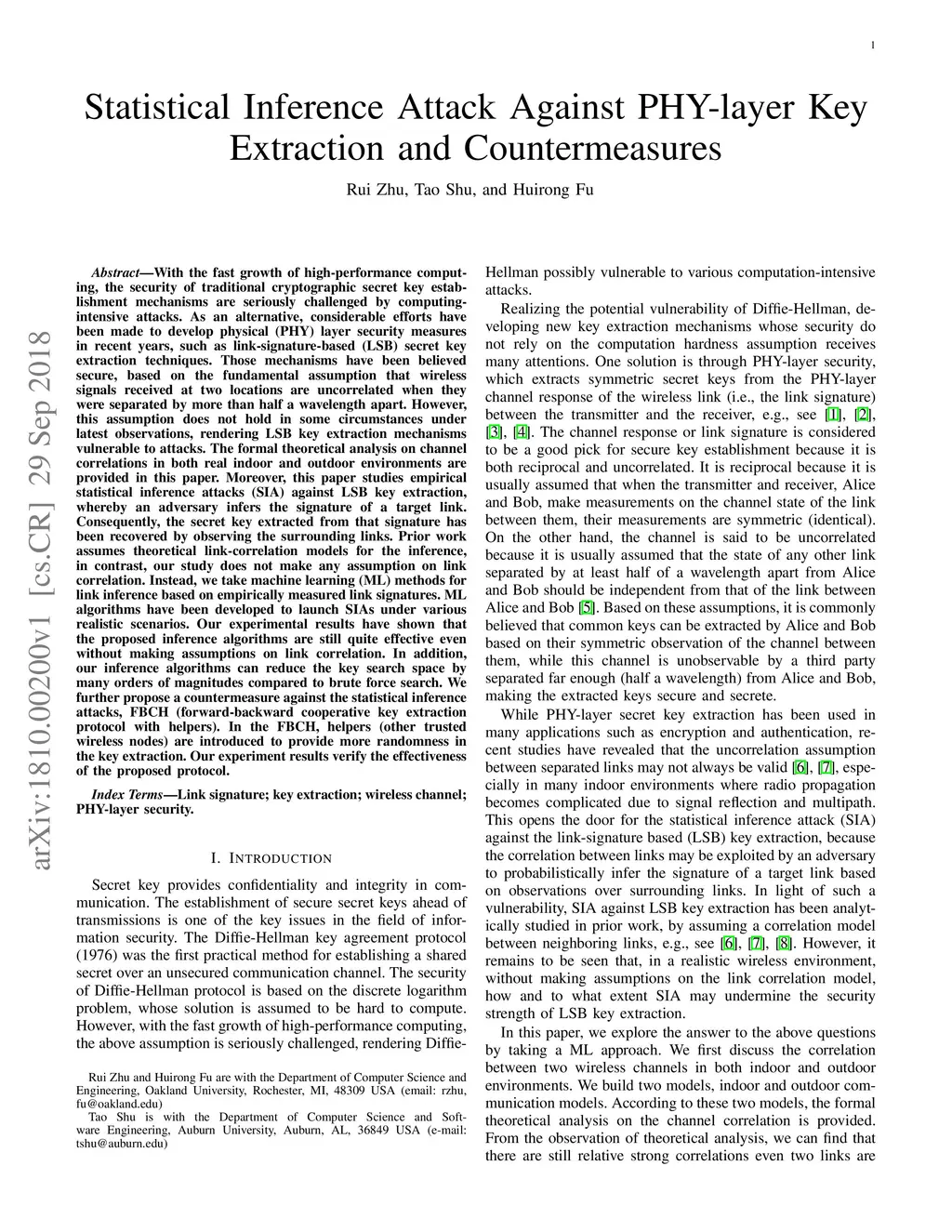 The formal theoretical analysis on channel correlations in both real indoor and outdoor environments are provided in this paper. Moreover, this paper studies empirical statistical inference attacks (SIA) against LSB key extraction, whereby an adversary infers the signature of a target link. Consequently, the secret key extracted from that signature has been recovered by observing the surrounding links. Prior work assumes theoretical link-correlation models for the inference, in contrast, our study does not make any assumption on link correlation. Instead, we take machine learning (ML) methods for link inference based on empirically measured link signatures. ML algorithms have been developed to launch SIAs under various realistic scenarios. Our experimental results have shown that the proposed inference algorithms are still quite effective even without making assumptions on link correlation. In addition, our inference algorithms can reduce the key search space by many orders of magnitudes compared to brute force search. We further propose a countermeasure against the statistical inference attacks, FBCH (forward-backward cooperative key extraction protocol with helpers). In the FBCH, helpers (other trusted wireless nodes) are introduced to provide more randomness in the key extraction. Our experiment results verify the effectiveness of the proposed protocol.