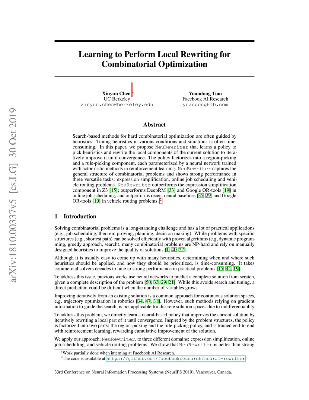 Learning to Perform Local Rewriting for Combinatorial Optimization