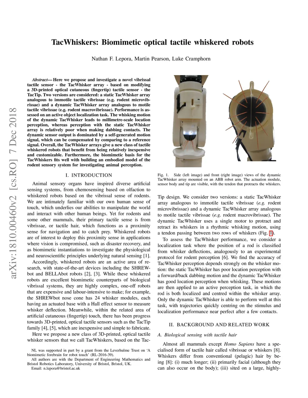 TacWhiskers: Biomimetic optical tactile whiskered robots