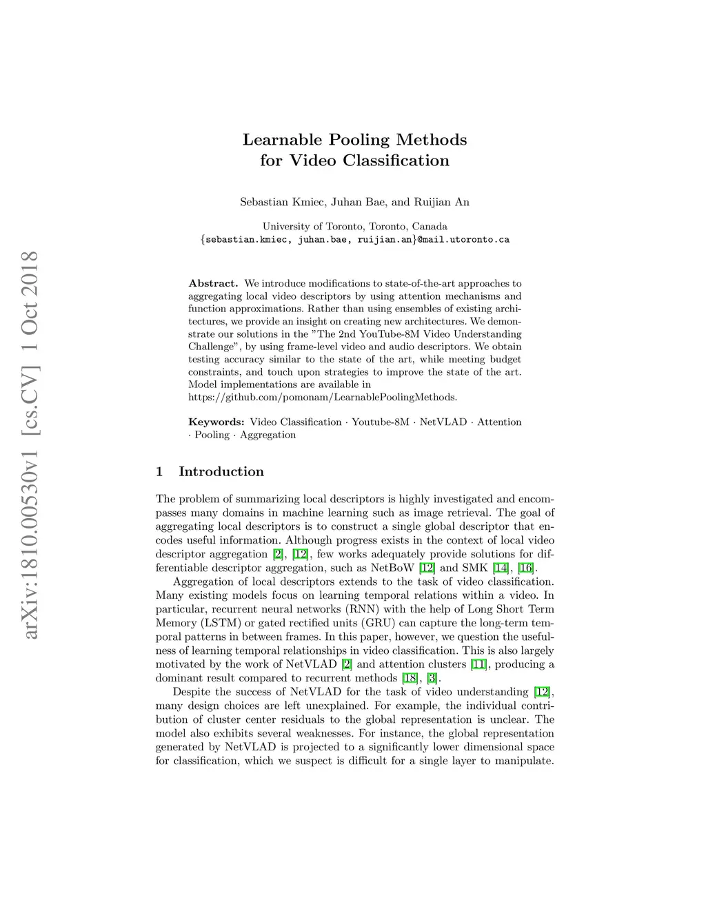 We introduce modifications to state-of-the-art approaches to aggregating local video descriptors by using attention mechanisms and function approximations. Rather than using ensembles of existing architectures, we provide an insight on creating new architectures. We demonstrate our solutions in the "The 2nd YouTube-8M Video Understanding Challenge", by using frame-level video and audio descriptors. We obtain testing accuracy similar to the state of the art, while meeting budget constraints, and touch upon strategies to improve the state of the art. Model implementations are available in https://github.com/pomonam/LearnablePoolingMethods.