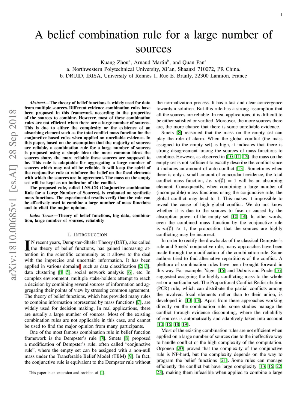 A belief combination rule for a large number of sources
