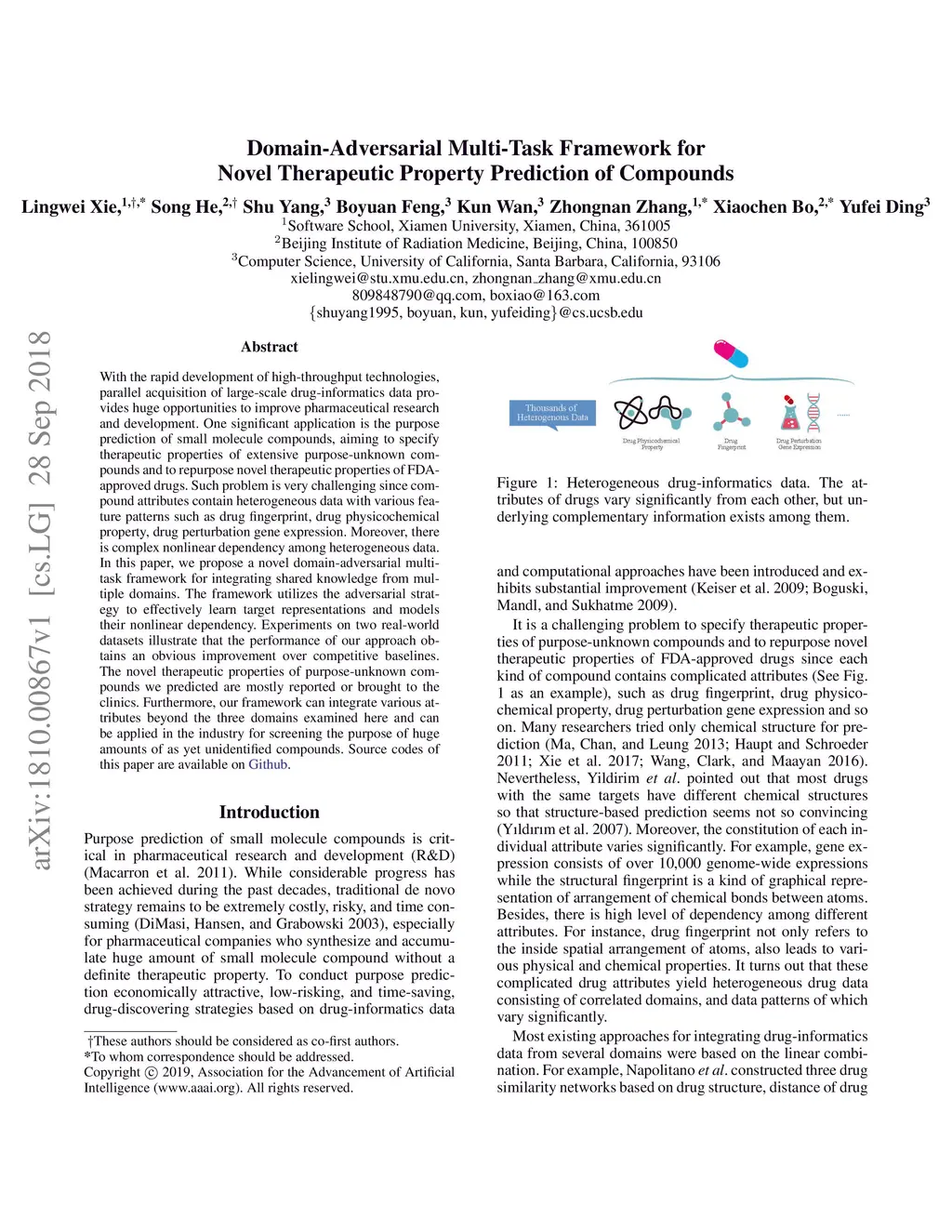 Domain-Adversarial Multi-Task Framework for Novel Therapeutic Property