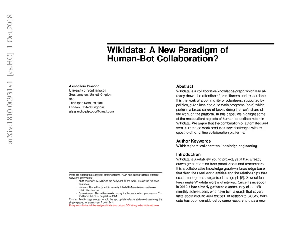 Wikidata: A New Paradigm of Human-Bot Collaboration?