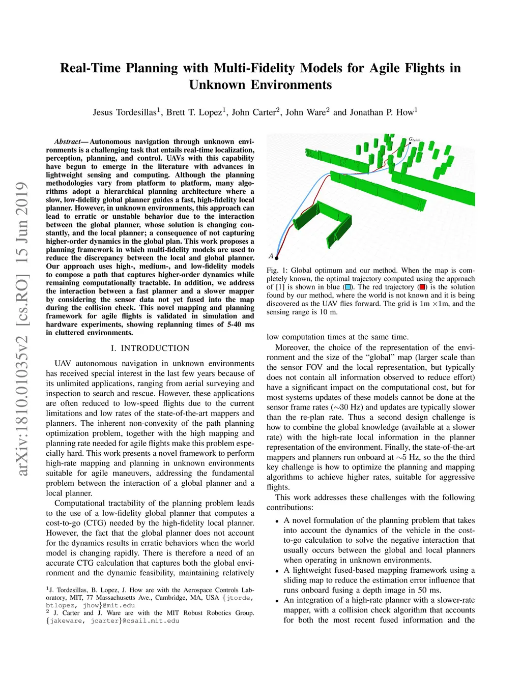 Autonomous navigation through unknown environments is a challenging task that entails real-time localization, perception, planning, and control. UAVs with this capability have begun to emerge in the literature with advances in lightweight sensing and computing. Although the planning methodologies vary from platform to platform, many algorithms adopt a hierarchical planning architecture where a slow, low-fidelity global planner guides a fast, high-fidelity local planner. However, in unknown environments, this approach can lead to erratic or unstable behavior due to the interaction between the global planner, whose solution is changing constantly, and the local planner; a consequence of not capturing higher-order dynamics in the global plan. This work proposes a planning framework in which multi-fidelity models are used to reduce the discrepancy between the local and global planner. Our approach uses high-, medium-, and low-fidelity models to compose a path that captures higher-order dynamics while remaining computationally tractable. In addition, we address the interaction between a fast planner and a slower mapper by considering the sensor data not yet fused into the map during the collision check. This novel mapping and planning framework for agile flights is validated in simulation and hardware experiments, showing replanning times of 5-40 ms in cluttered environments.