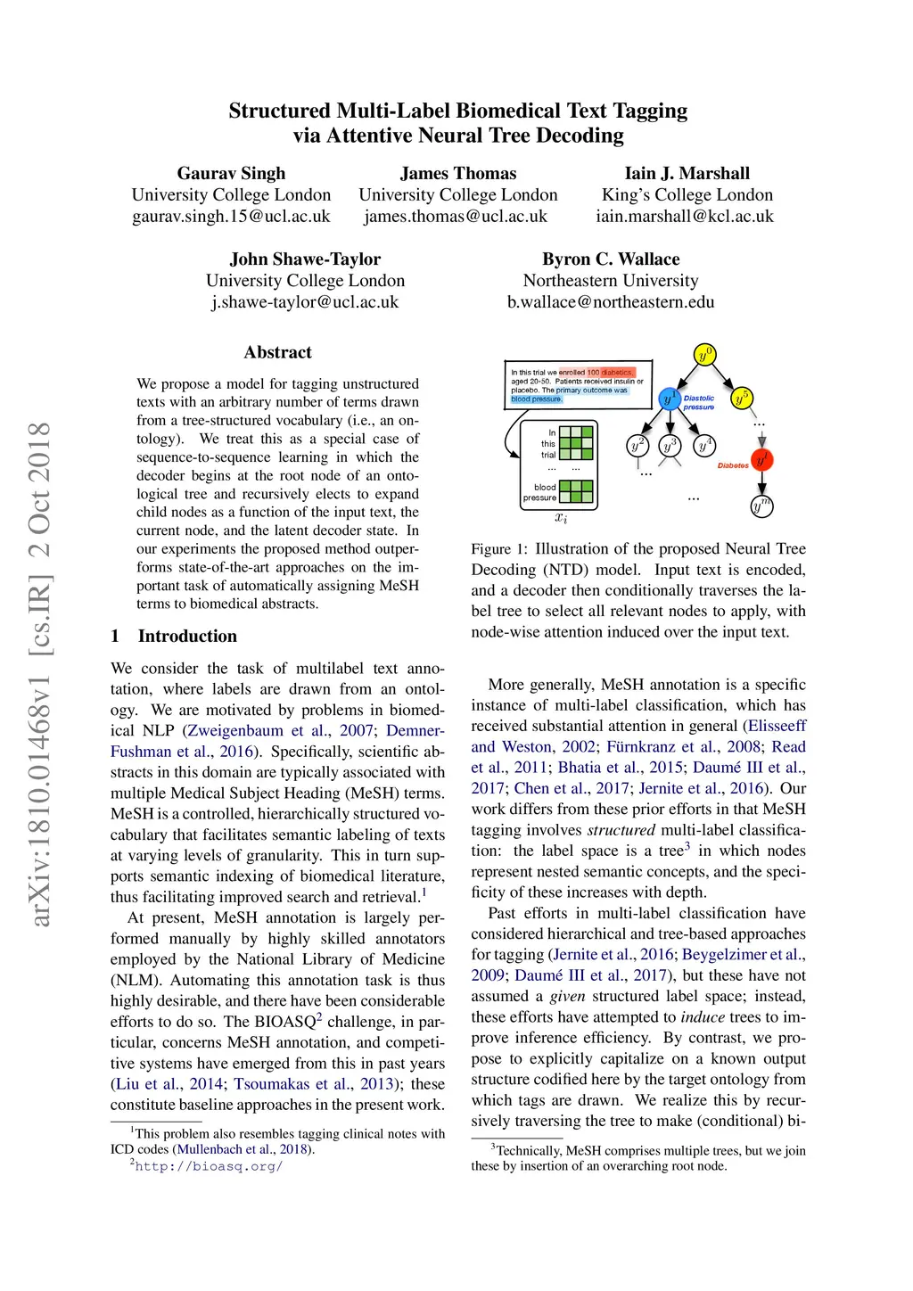 Structured Multi-Label Biomedical Text Tagging via Attentive Neural Tree