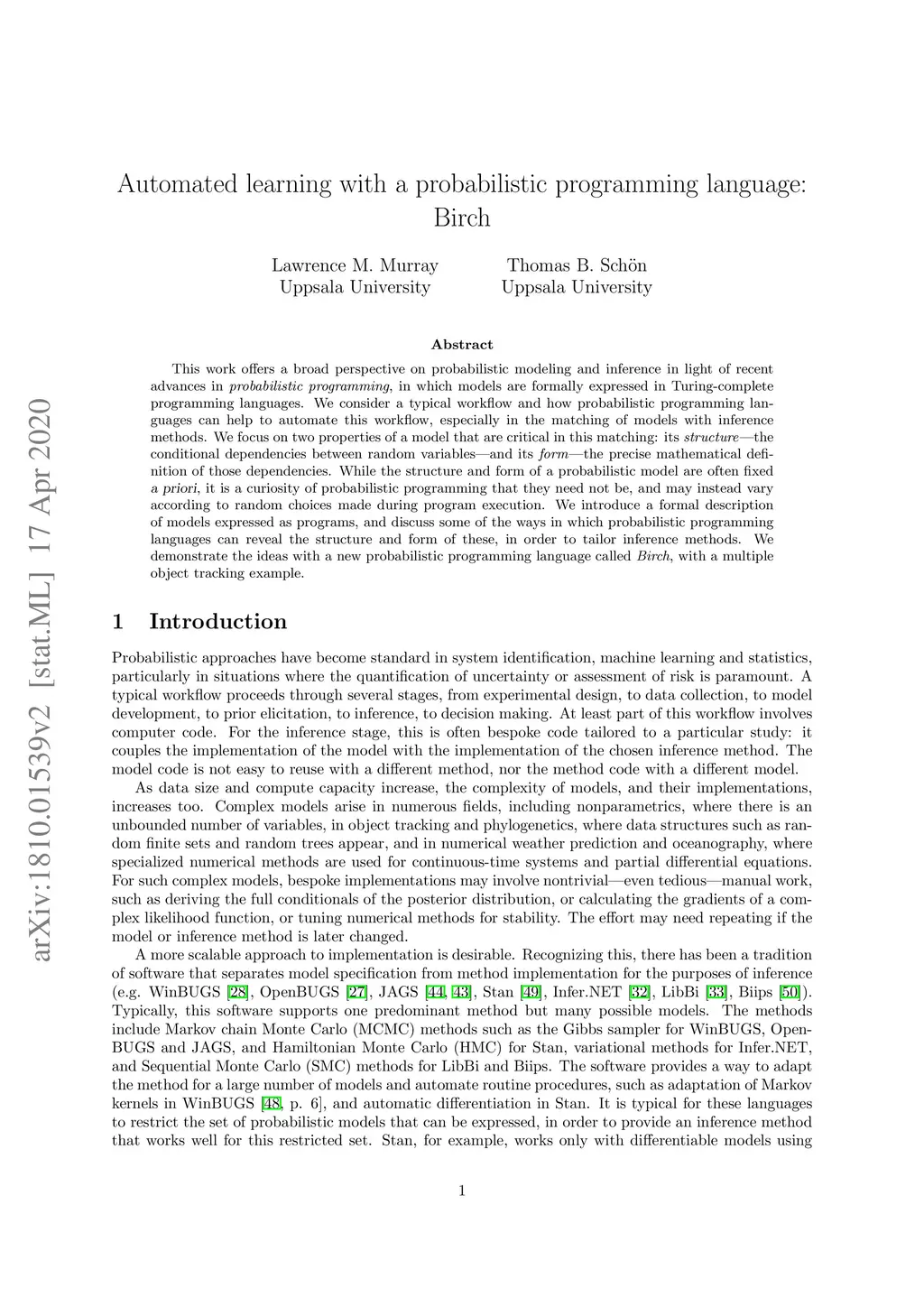 Automated learning with a probabilistic programming language: Birch