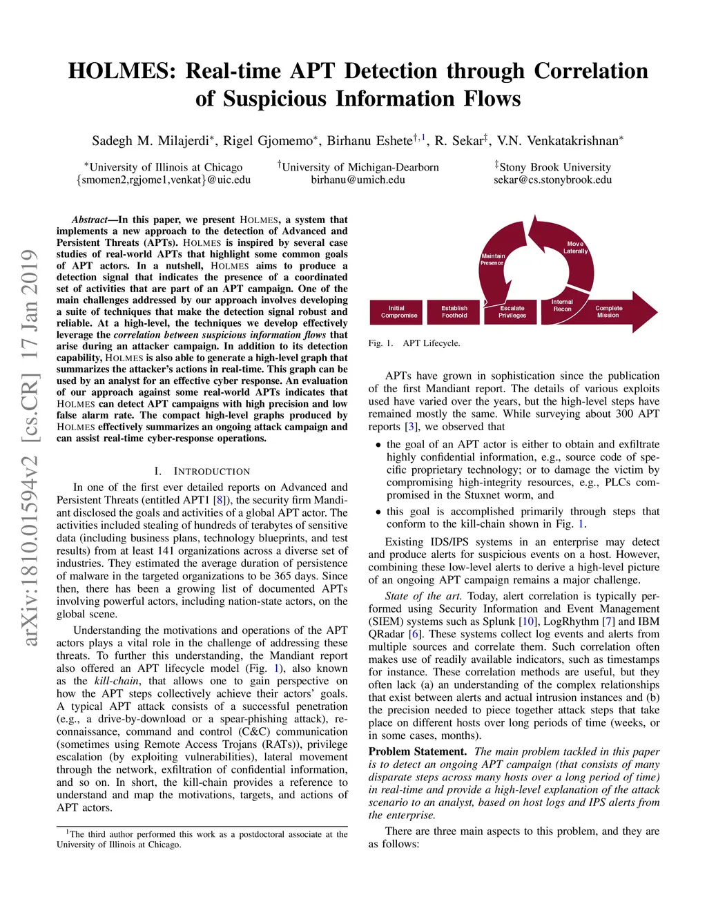 HOLMES: Real-time APT Detection through Correlation of Suspicious