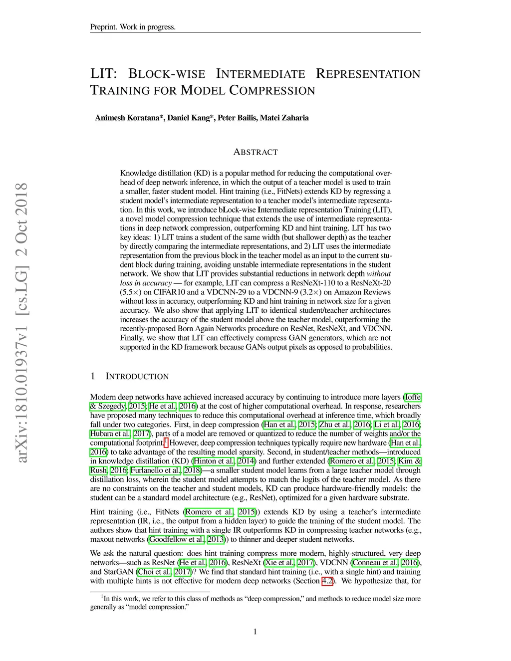 LIT: Block-wise Intermediate Representation Training for Model