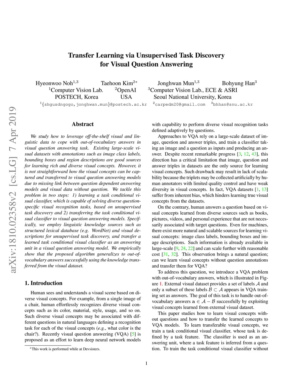 Transfer Learning via Unsupervised Task Discovery for Visual Question