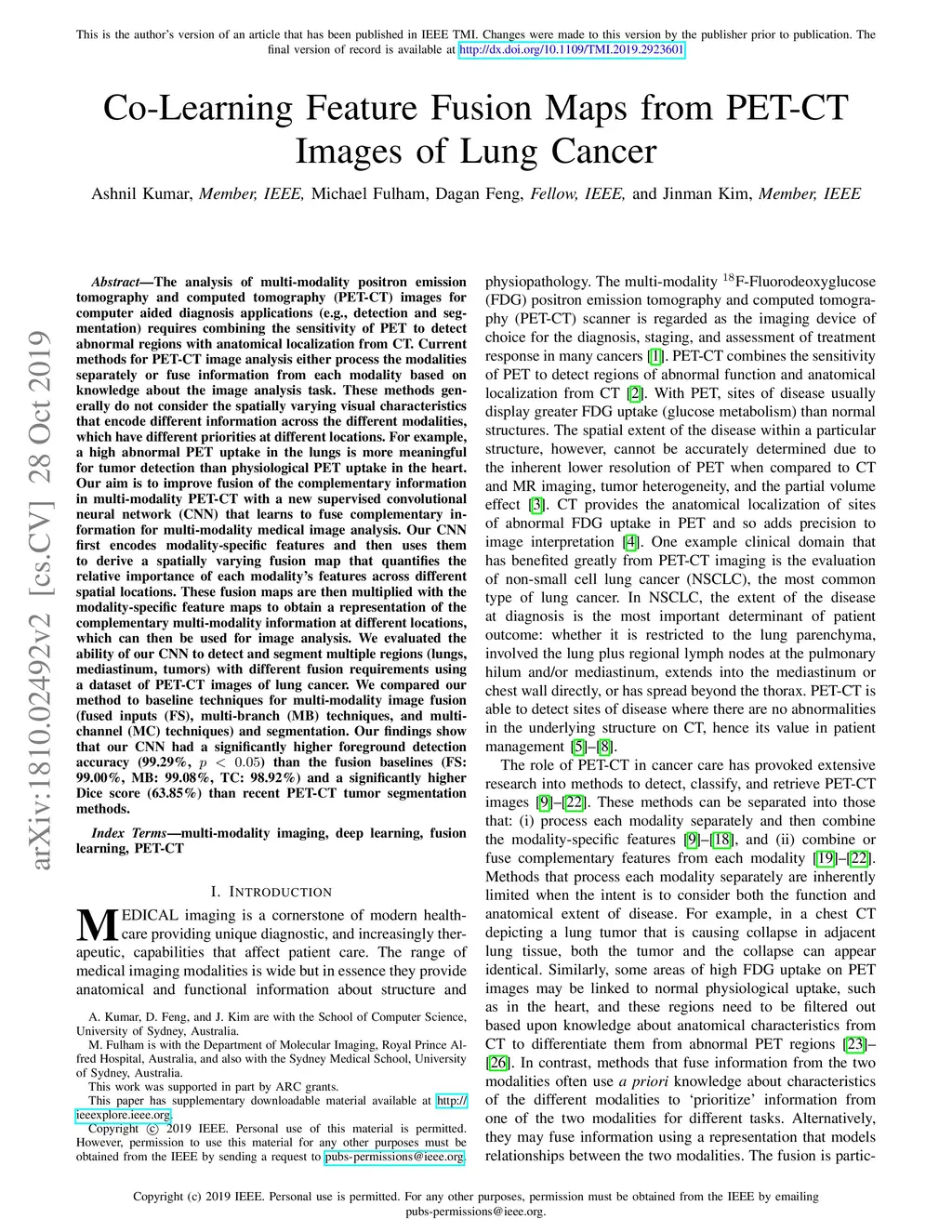 Co-Learning Feature Fusion Maps from PET-CT Images of Lung Cancer