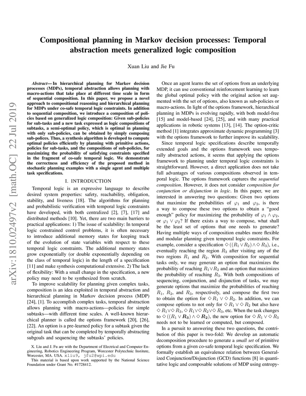 Compositional planning in Markov decision processes: Temporal