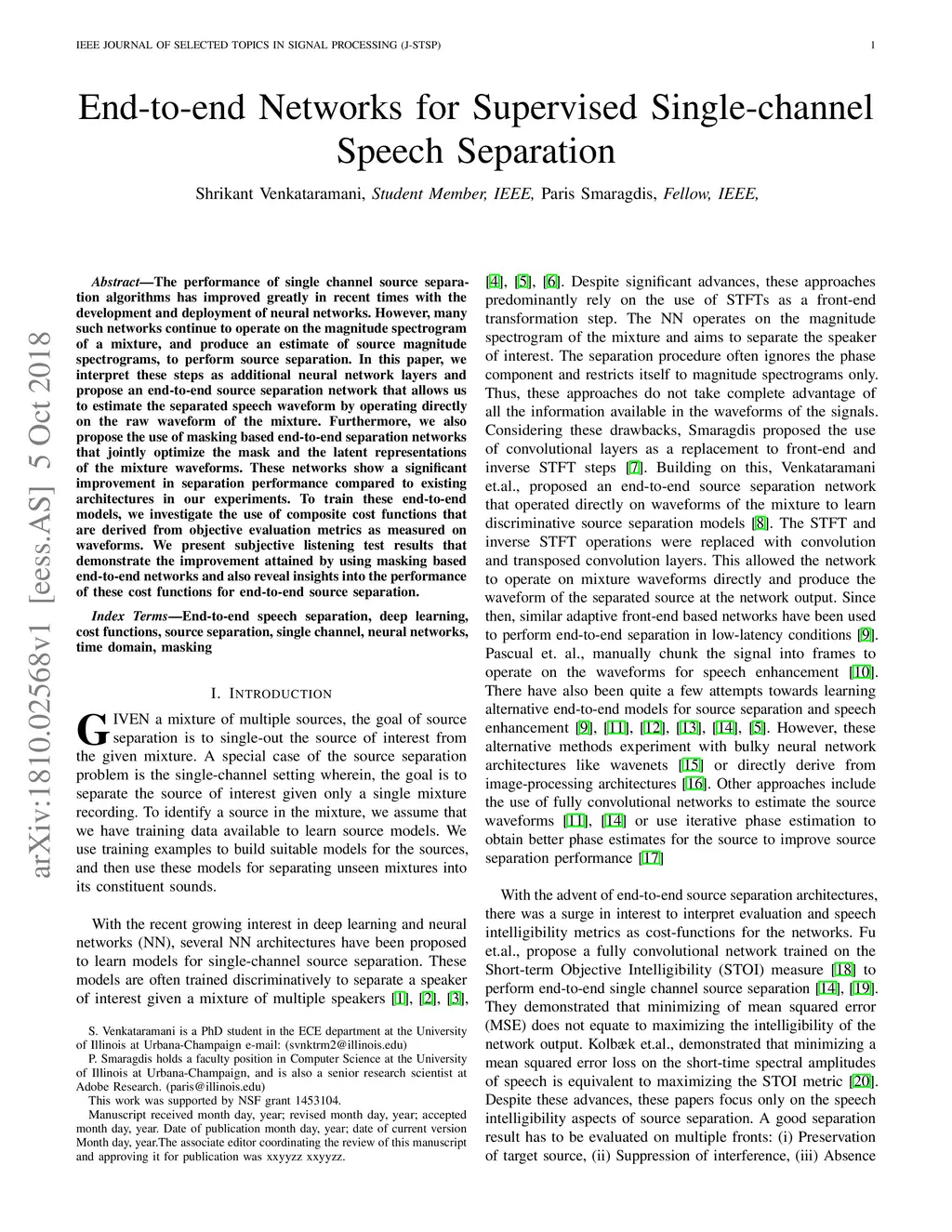 End-to-end Networks for Supervised Single-channel Speech Separation