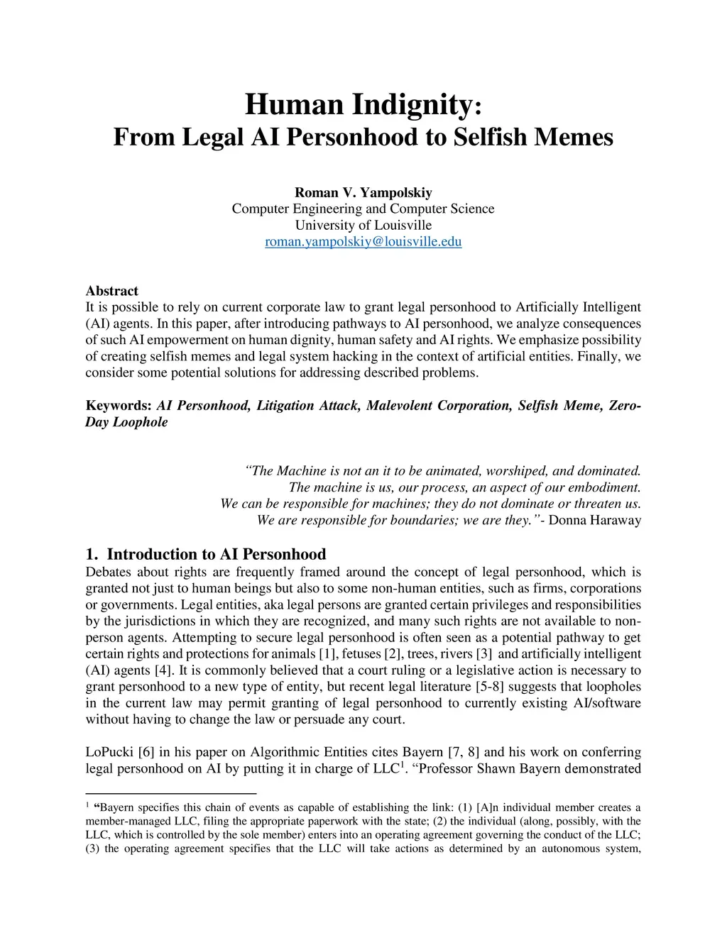 Human Indignity: From Legal AI Personhood to Selfish Memes