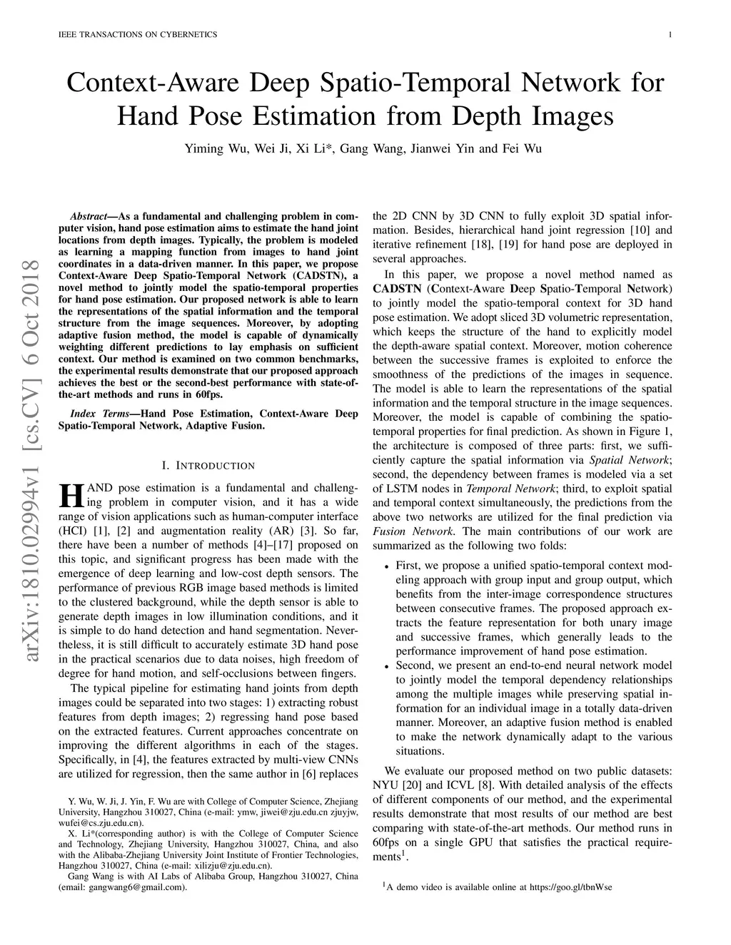 Context-Aware Deep Spatio-Temporal Network for Hand Pose Estimation from