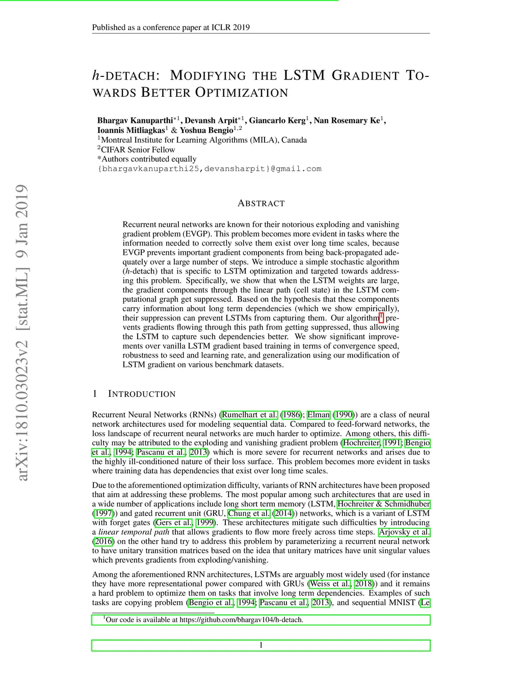 h-detach: Modifying the LSTM Gradient Towards Better Optimization
