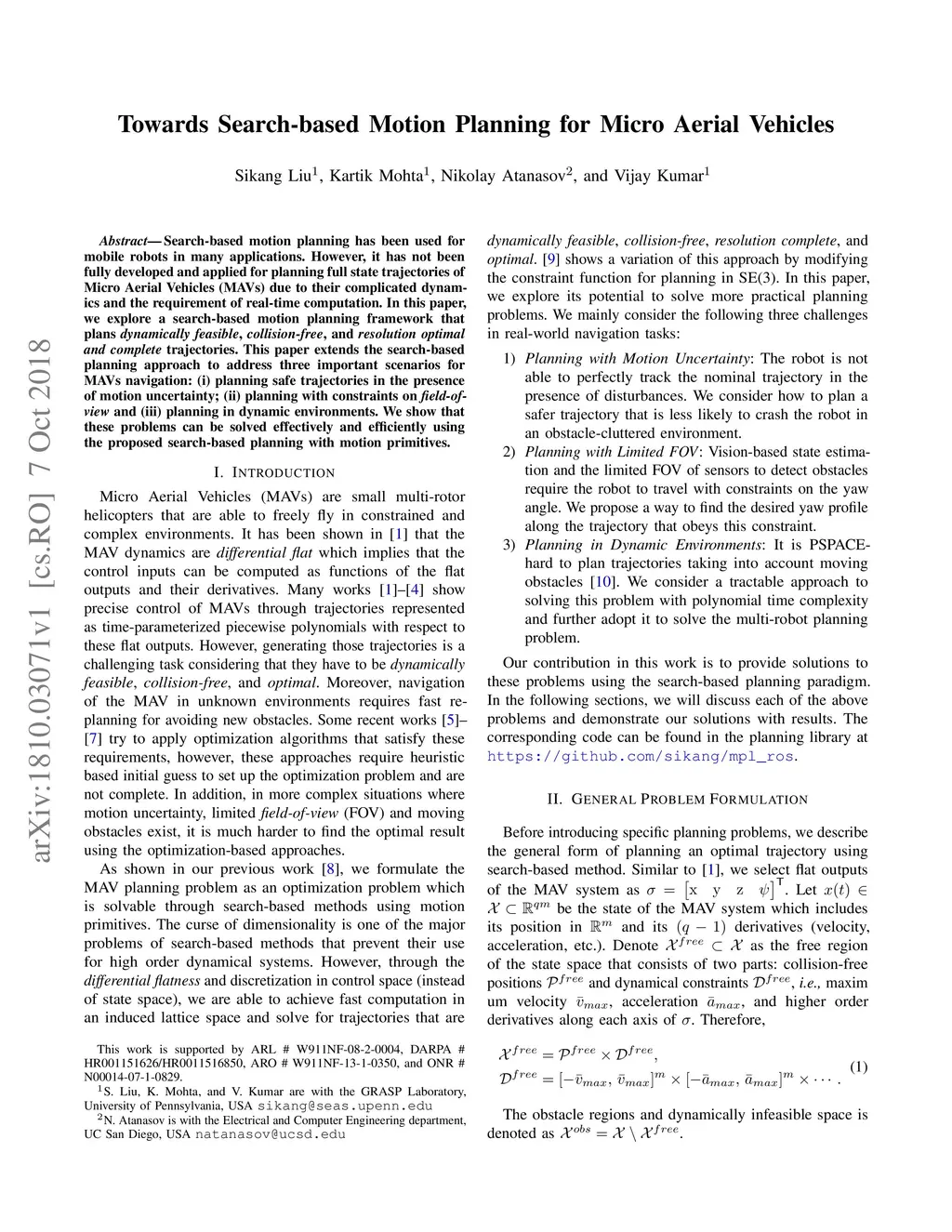 Towards Search-based Motion Planning for Micro Aerial Vehicles
