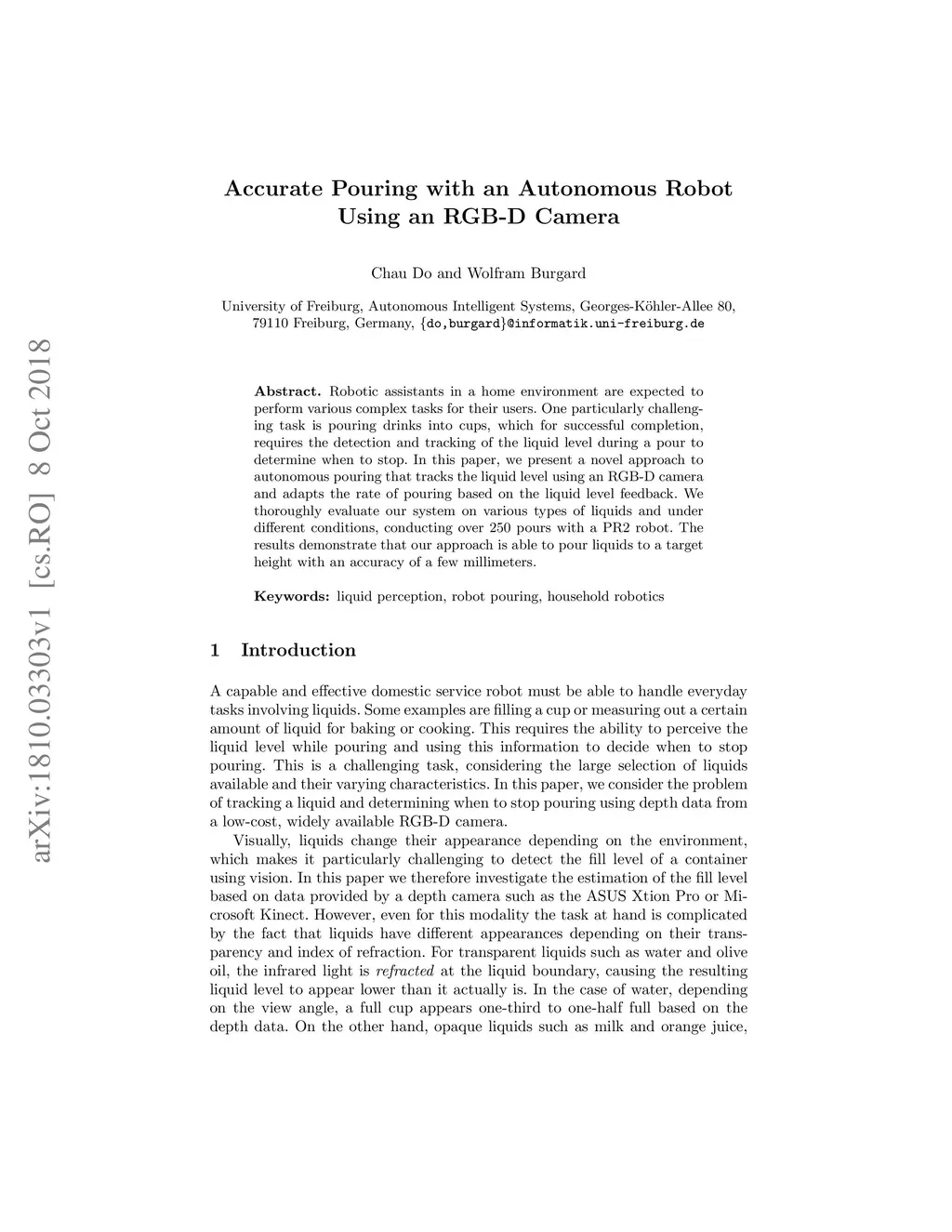 Accurate Pouring with an Autonomous Robot Using an RGB-D Camera
