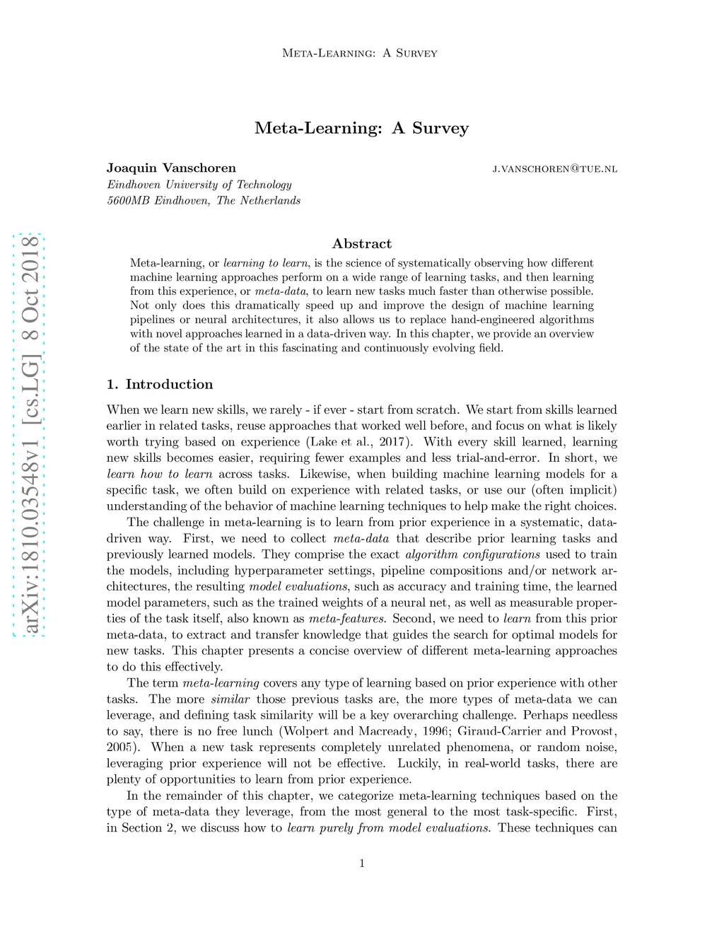 Meta-learning, or learning to learn, is the science of systematically observing how different machine learning approaches perform on a wide range of learning tasks, and then learning from this experience, or meta-data, to learn new tasks much faster than otherwise possible. Not only does this dramatically speed up and improve the design of machine learning pipelines or neural architectures, it also allows us to replace hand-engineered algorithms with novel approaches learned in a data-driven way. In this chapter, we provide an overview of the state of the art in this fascinating and continuously evolving field.