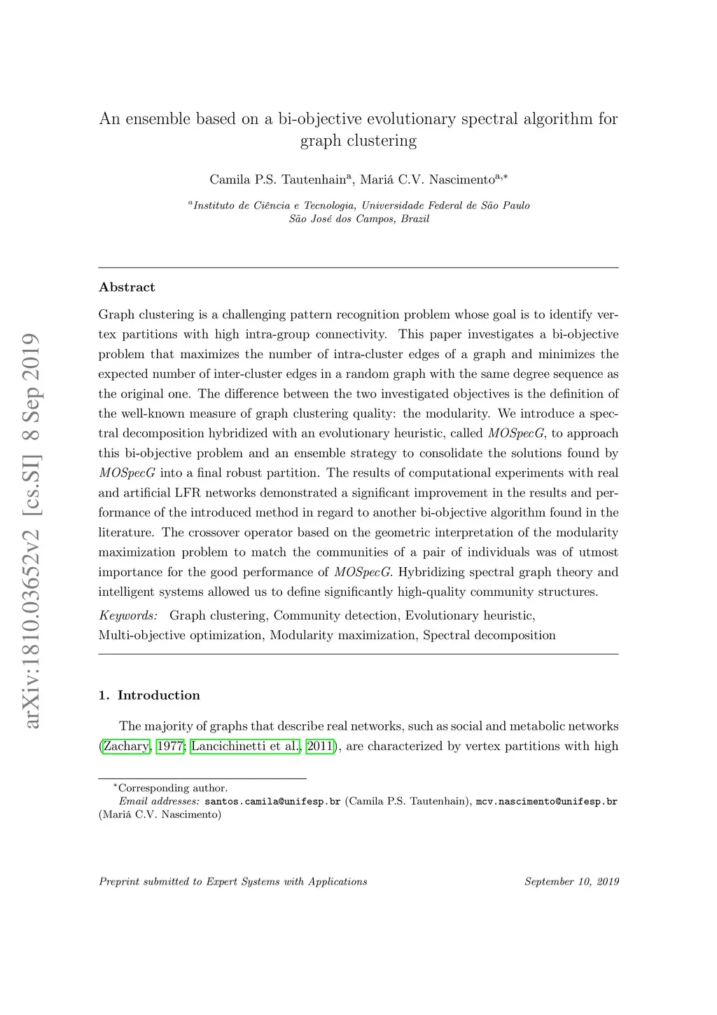 An ensemble based on a bi-objective evolutionary spectral algorithm for