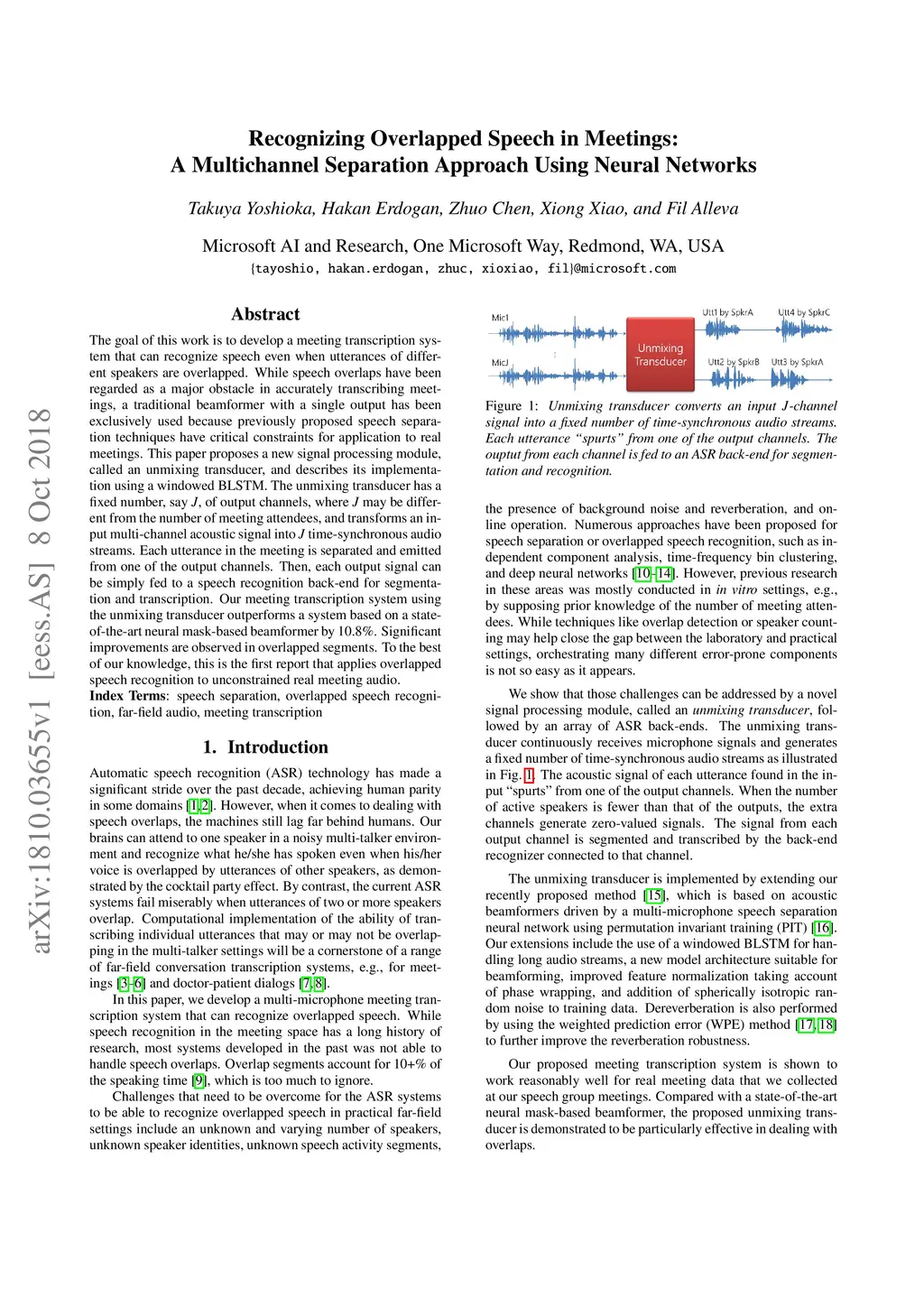 Recognizing Overlapped Speech in Meetings: A Multichannel Separation