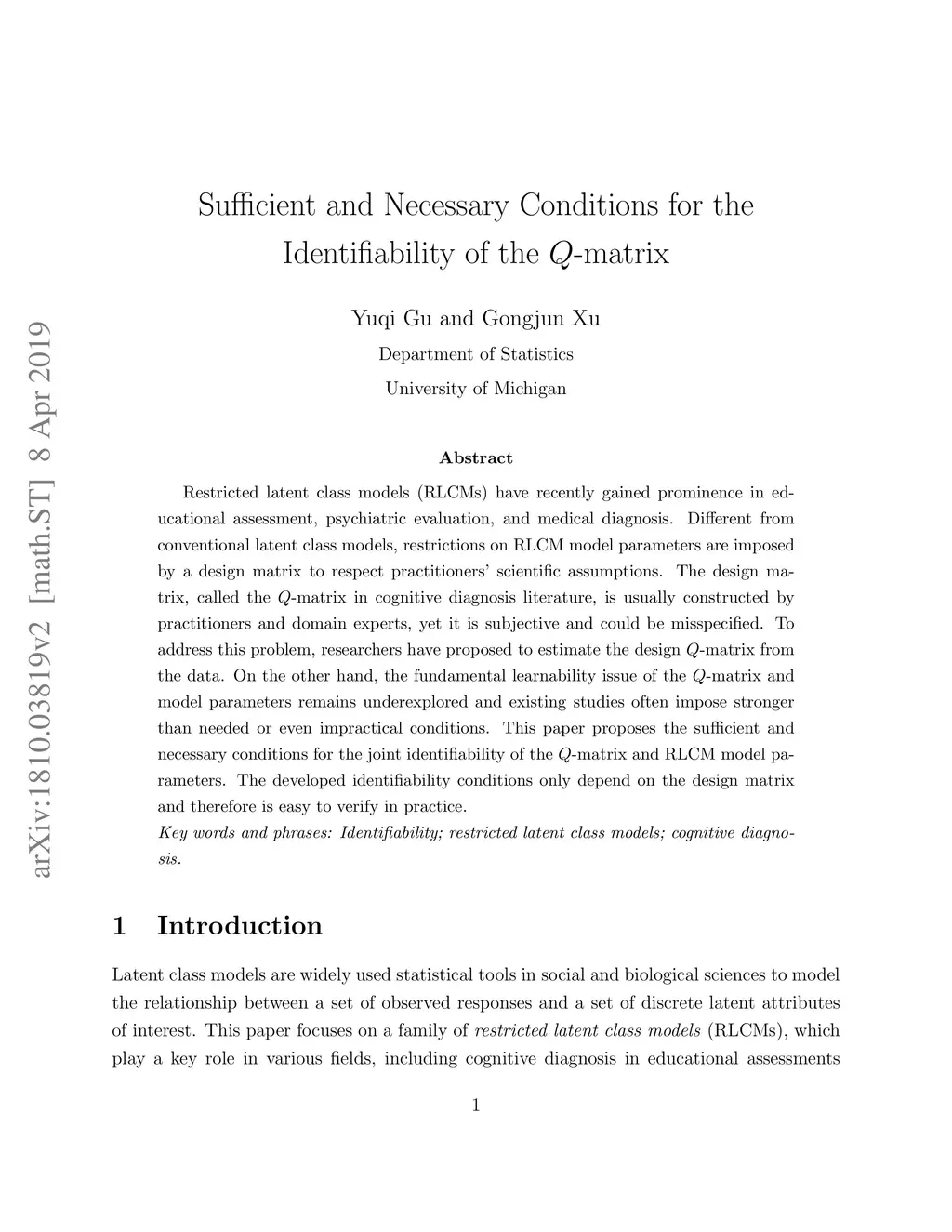 Sufficient and Necessary Conditions for the Identifiability of the