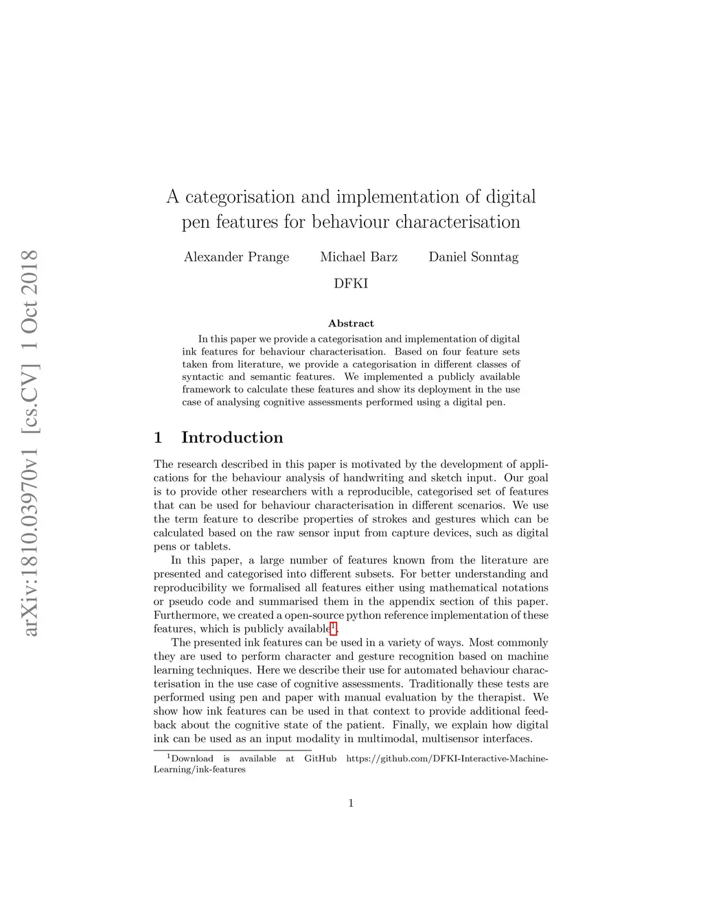 A categorisation and implementation of digital pen features for