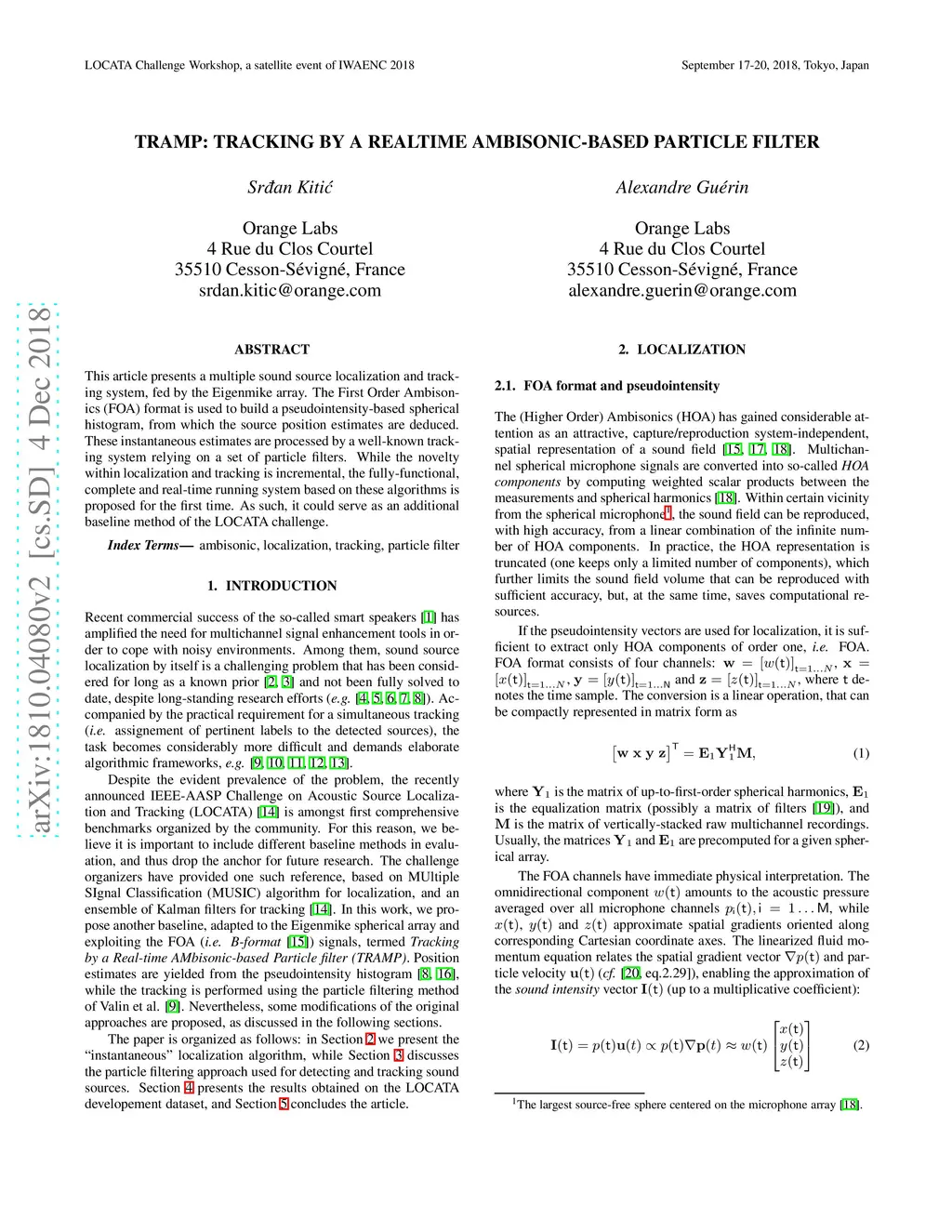 TRAMP: Tracking by a Real-time AMbisonic-based Particle filter