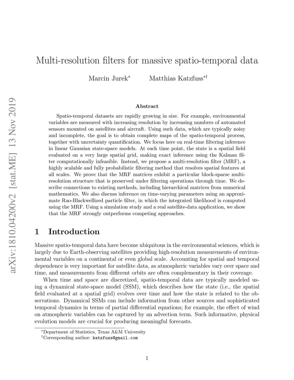 Multi-resolution filters for massive spatio-temporal data