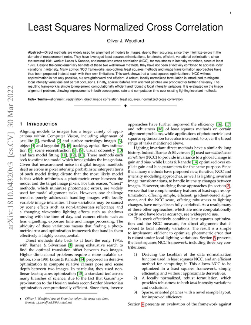 Least Squares Normalized Cross Correlation