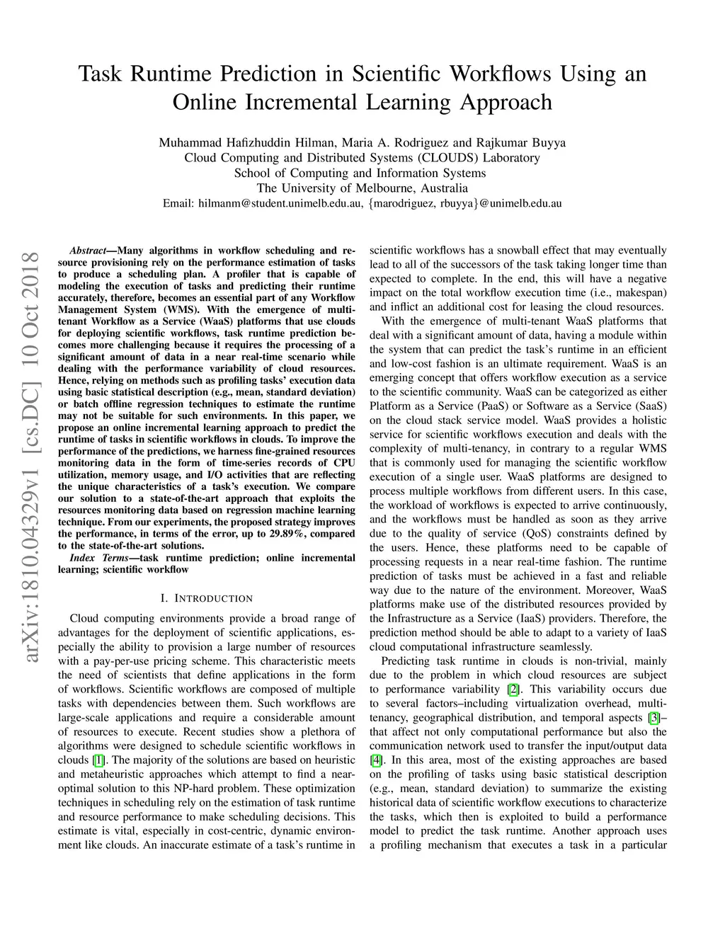Task Runtime Prediction in Scientific Workflows Using an Online