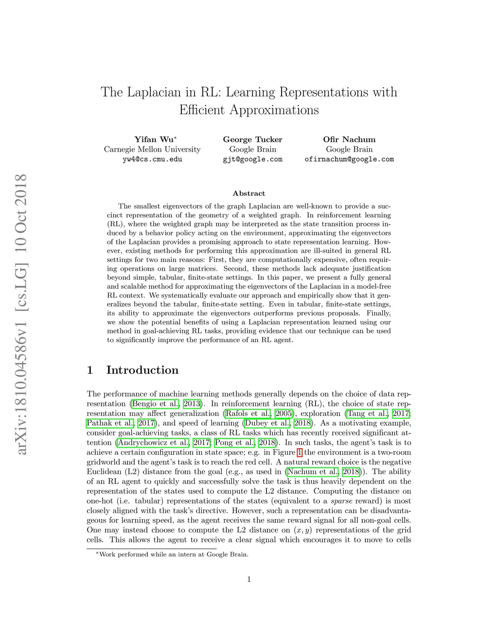 The Laplacian in RL: Learning Representations with Efficient
